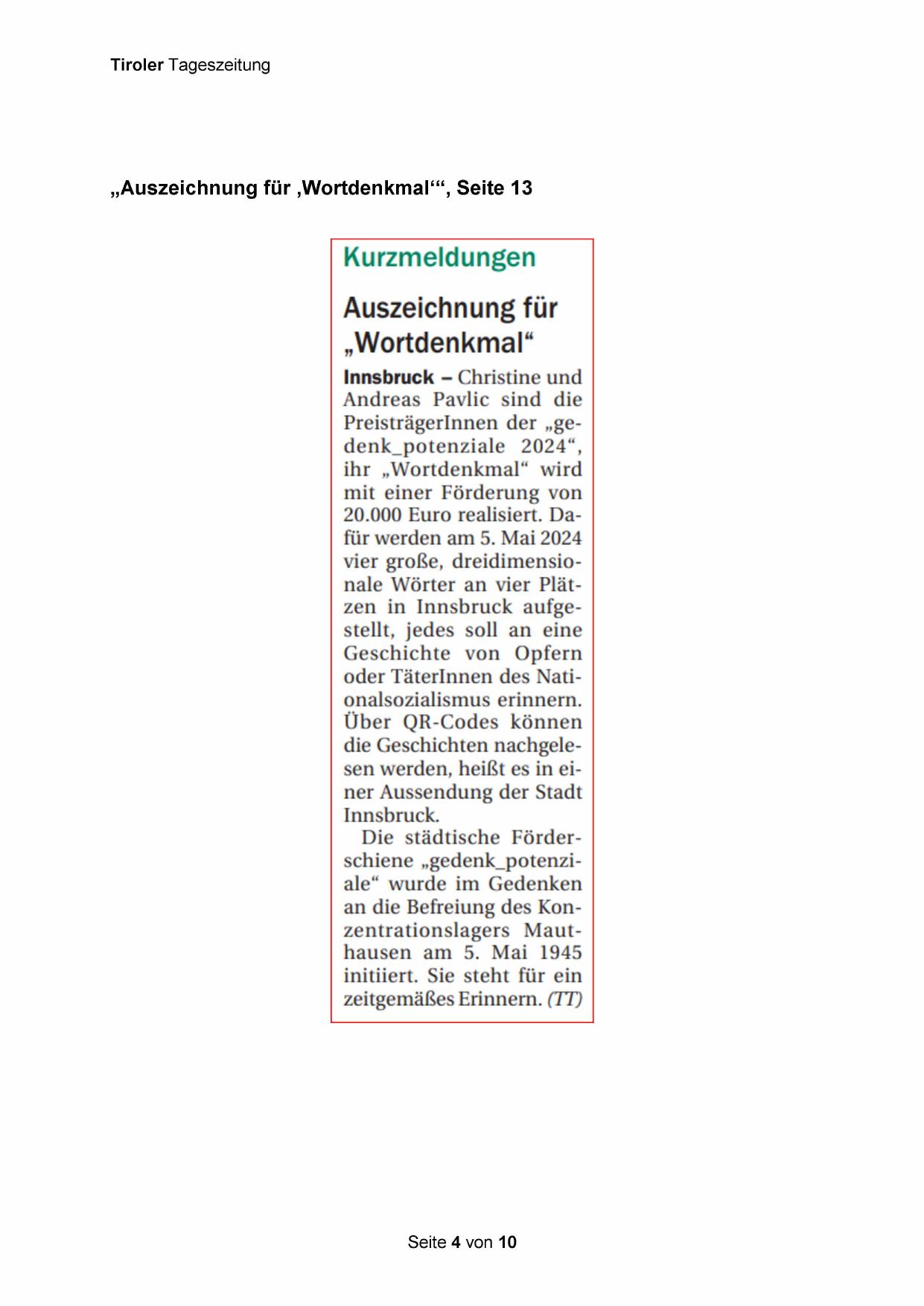 „Auszeichnung für ‚Wortdenkmal“‘“, Seite 13
