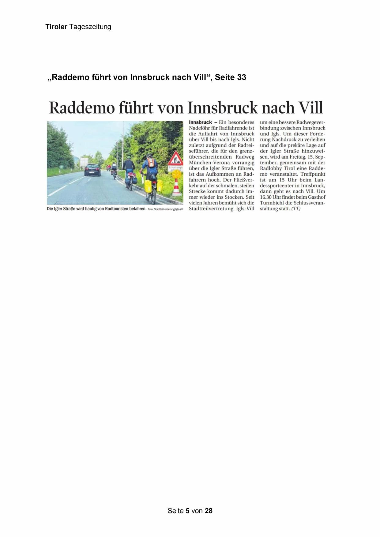 „Raddemo führt von Innsbruck nach Vill“, Seite 33