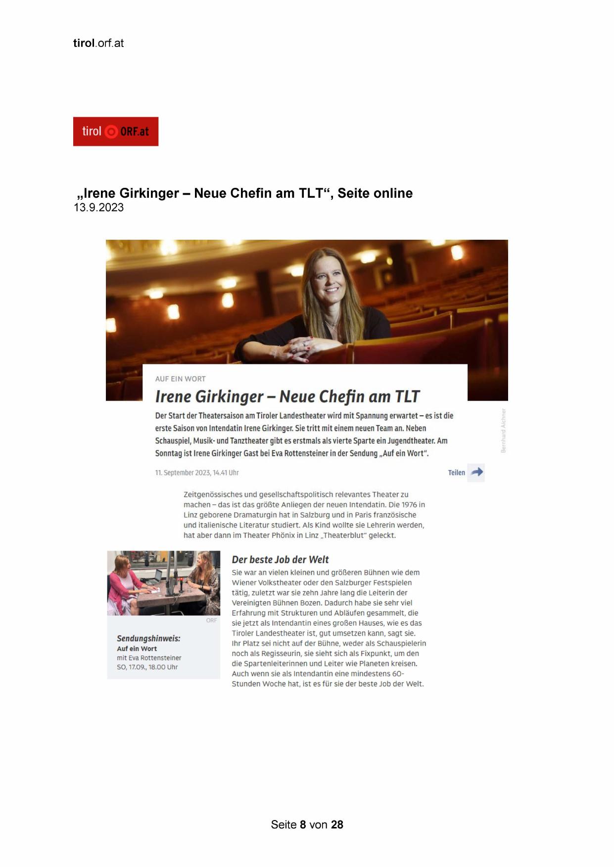 „Irene Girkinger - Neue Chefin am TLT“, Seite online