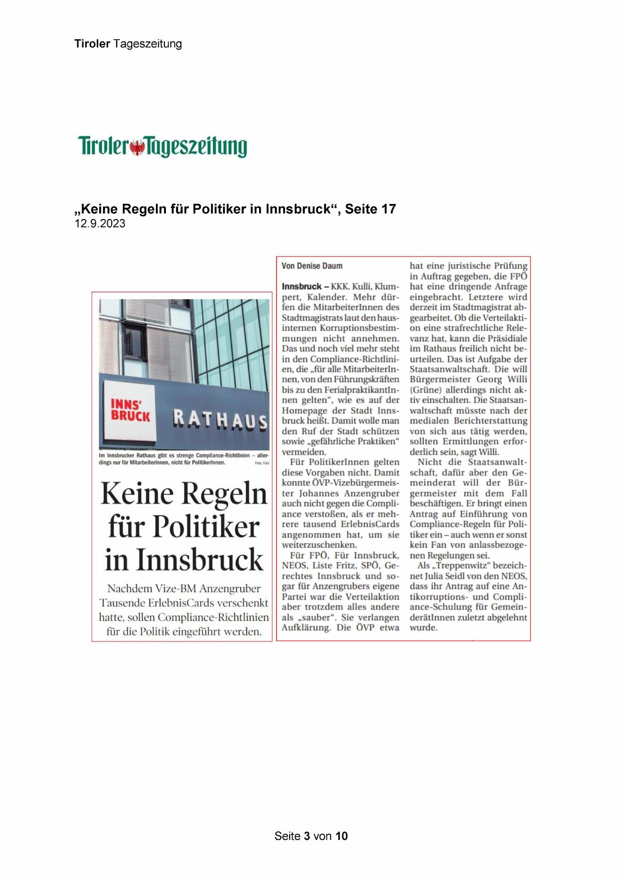 „Keine Regeln für Politiker in Innsbruck“, Seite 17