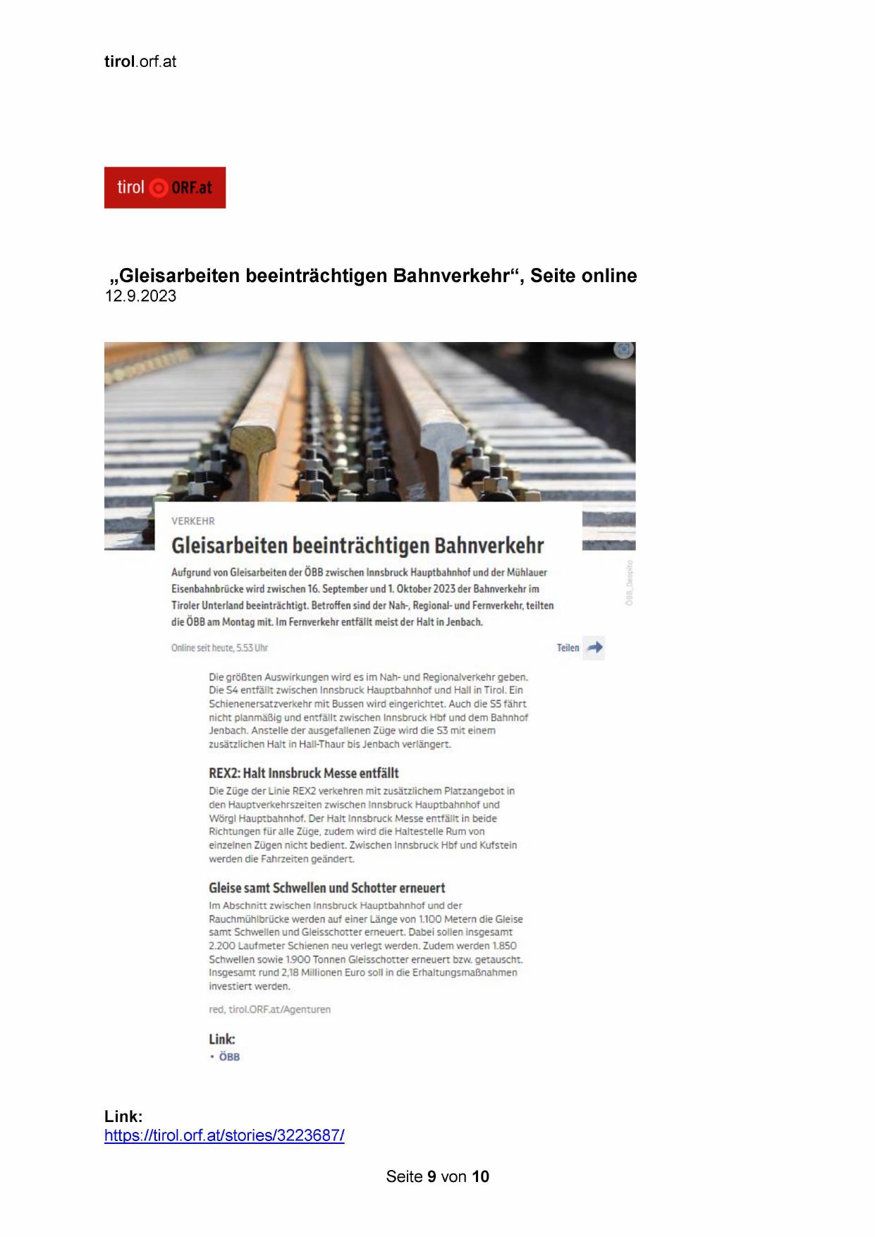 „Gleisarbeiten beeinträchtigen Bahnverkehr“, Seite online