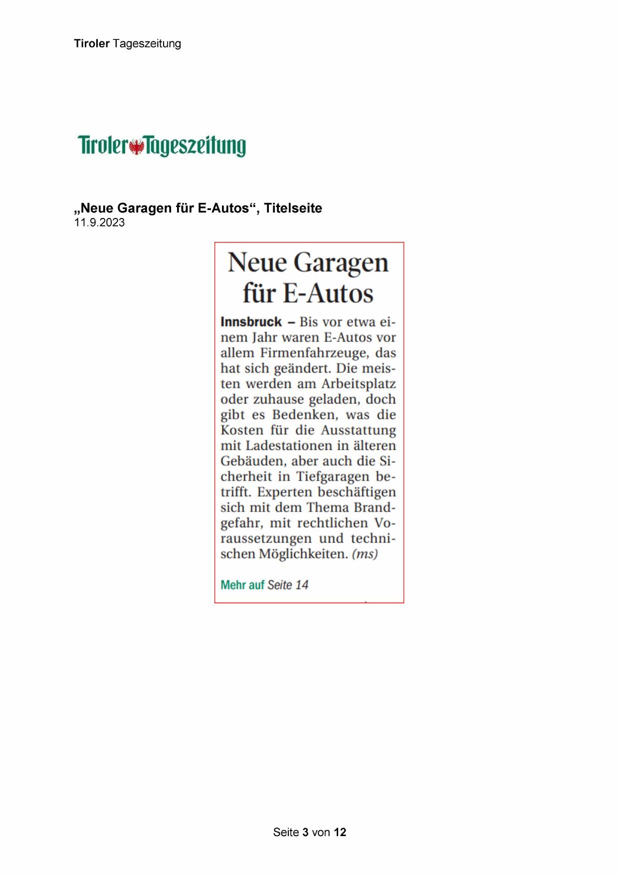 „Neue Garagen für E-Autos“, Titelseite