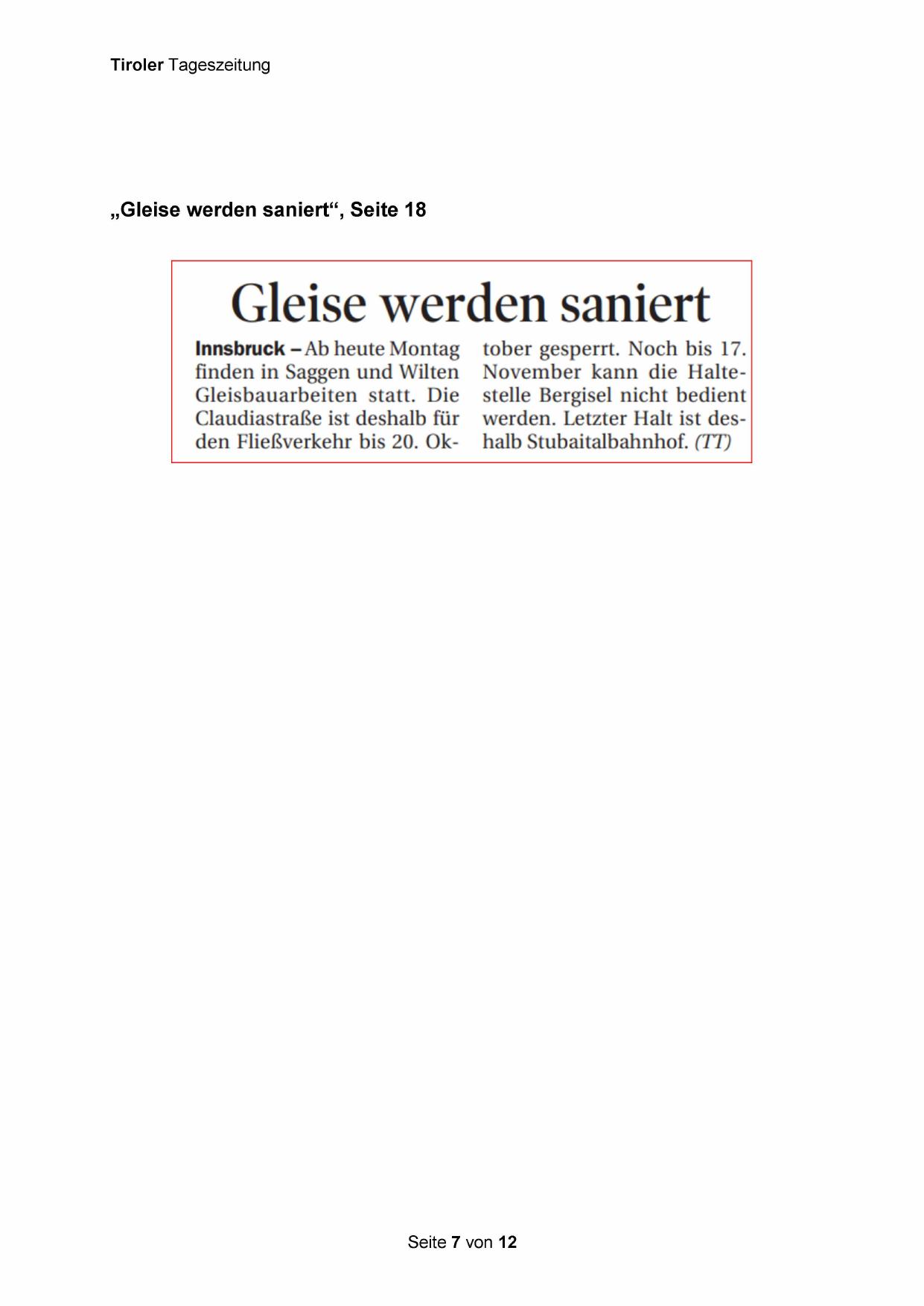 werden. Letzter Halt ist deshalb Stubaitalbahnhof. (TT)