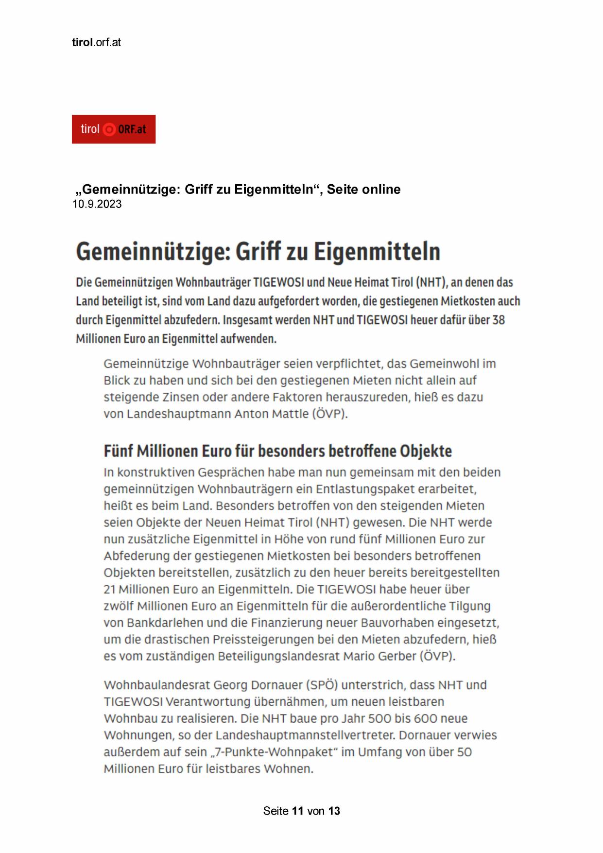 durch Eigenmittel abzufedern. Insgesamt werden NHT und TIGEWOSI heuer dafür über 38
