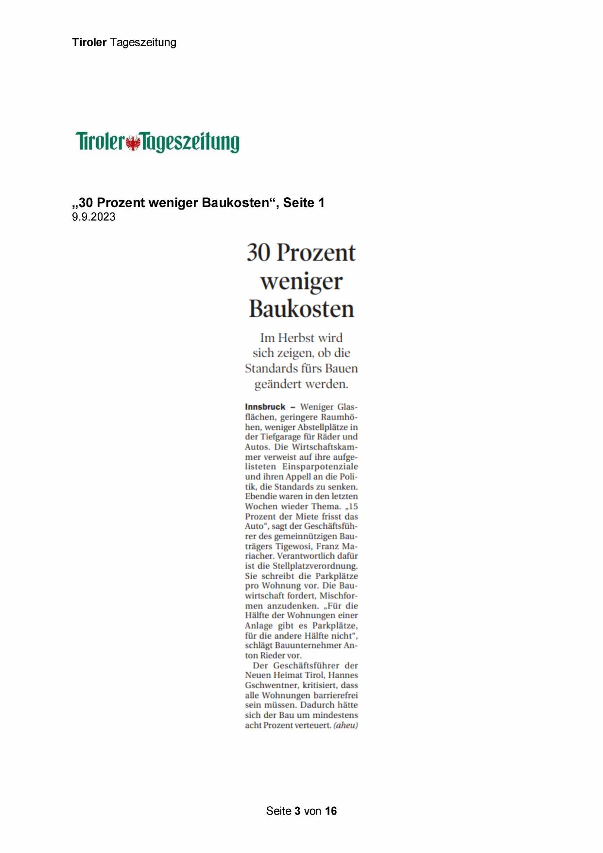 Auto“, sagt der Geschäftsführer des gemeinnützigen Bauträgers Tigewosi, Franz Mariacher. Verantwortlich dafür
