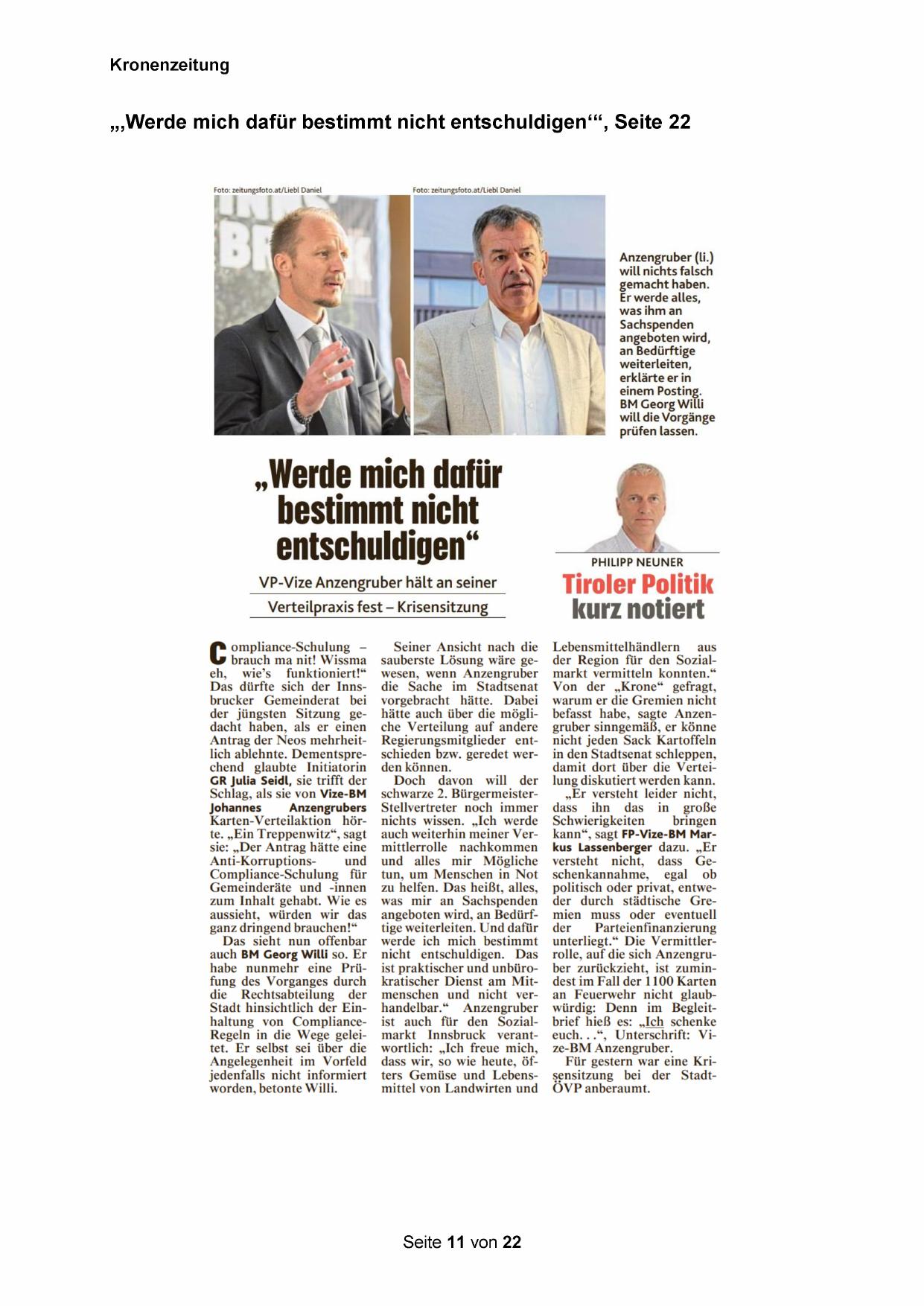 Antrag der Neos mehrheitlich ablehnte. Dementsprechend glaubte Initiatorin
