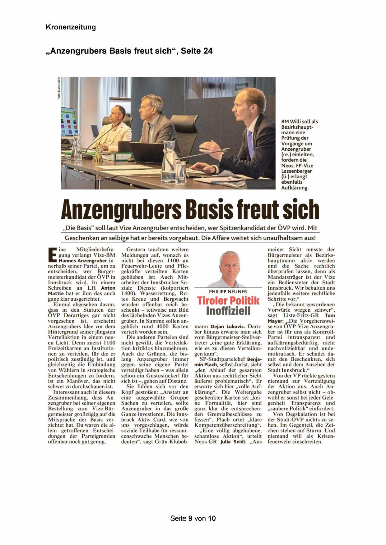 der Aktion aus. Auch Anzengruber selbst nicht — obwohl er sonst bei jeder Gelegenheit Transparenz und