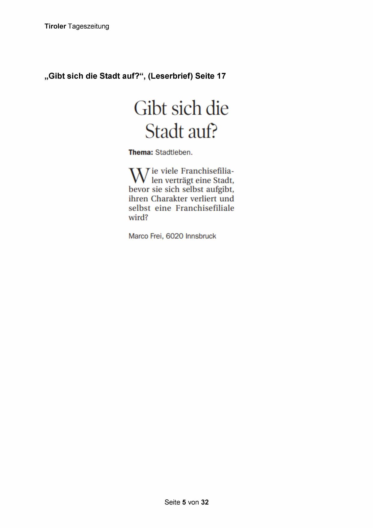 „Gibt sich die Stadt auf?“, (Leserbrief) Seite 17