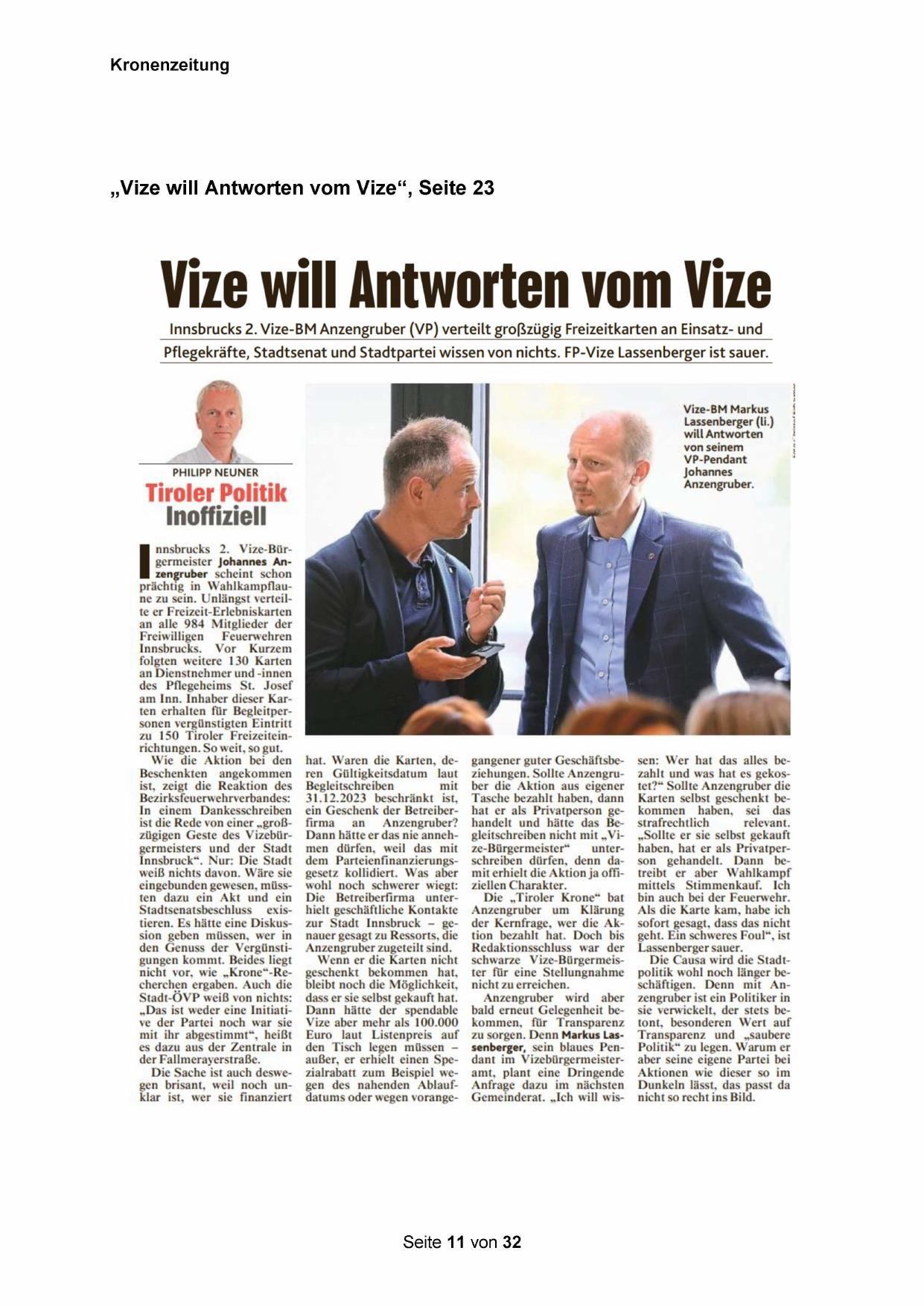 „Vize will Antworten vom Vize“, Seite 23