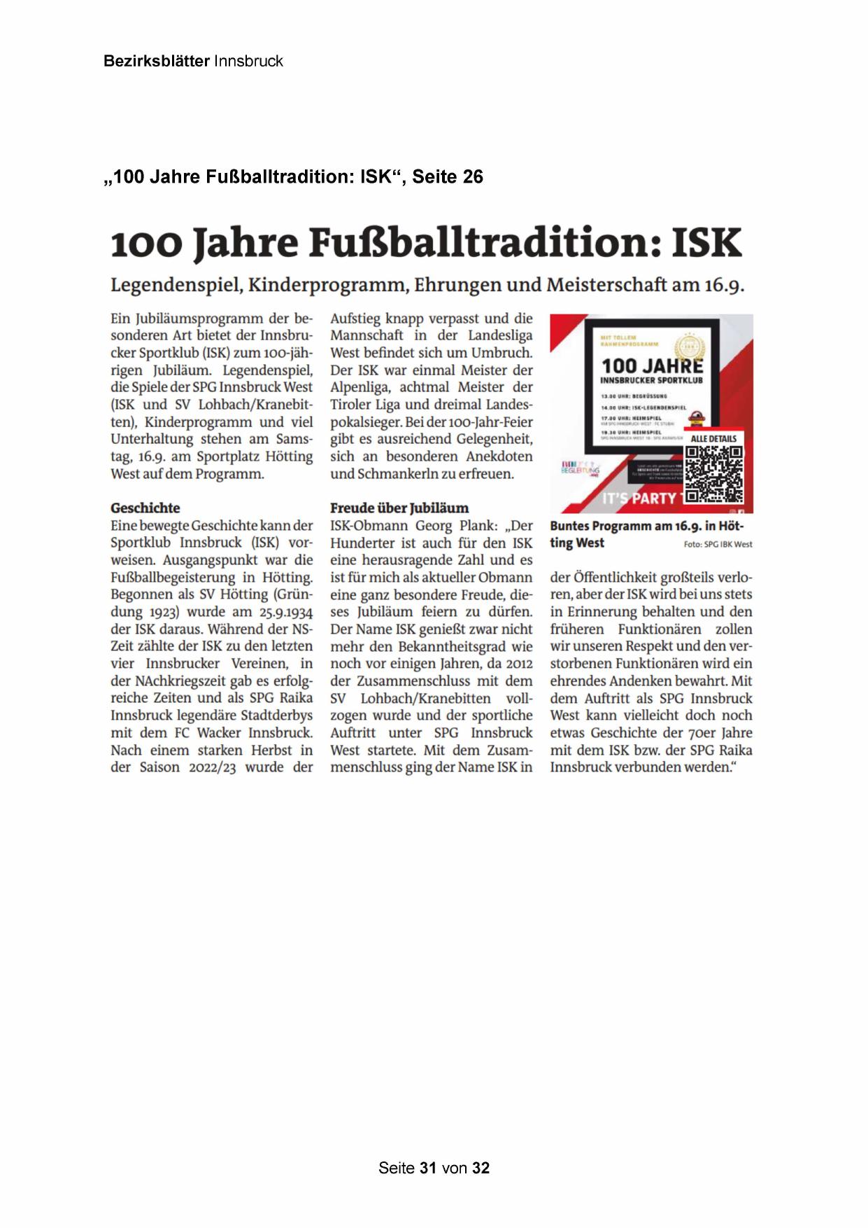 Sportklub Innsbruck (ISK) vorweisen. Ausgangspunkt war die
