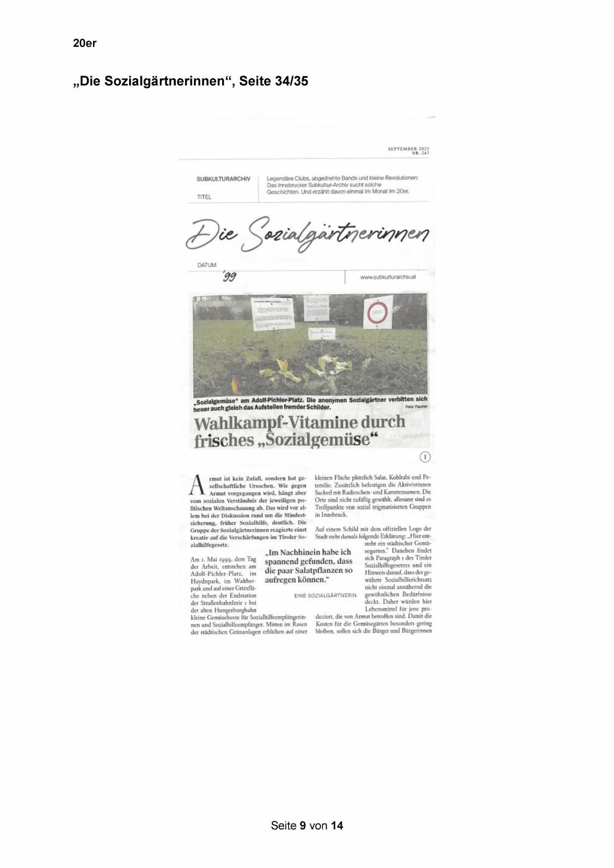 Adolf-Pichler-Platz, im die paar Salatpflanzen SO }inweis darauf, dass der ge-