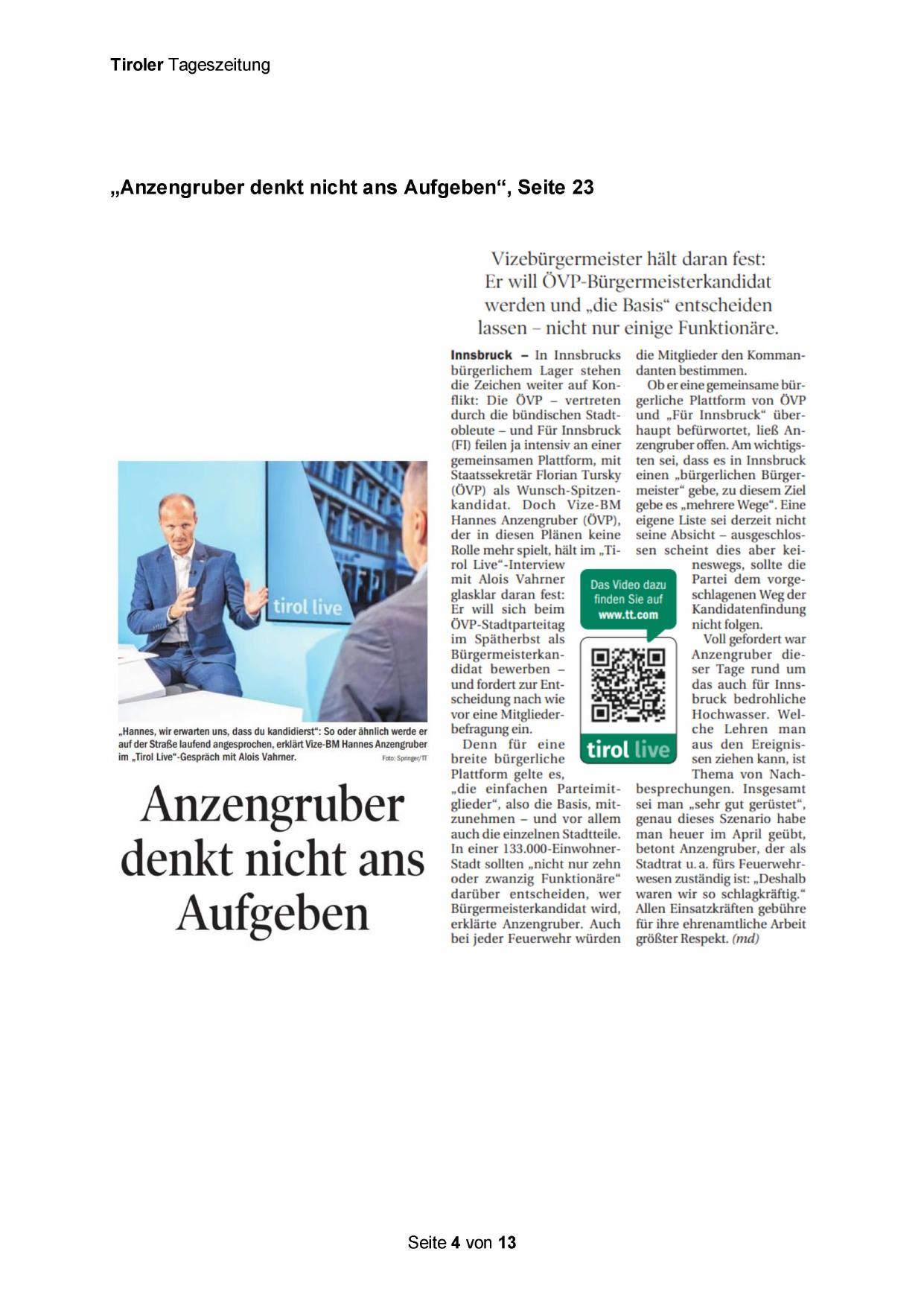 und „Für Innsbruck“ überhaupt befürwortet, ließ Anzengruber offen. Am wichtigsten sei, dass es in Innsbruck