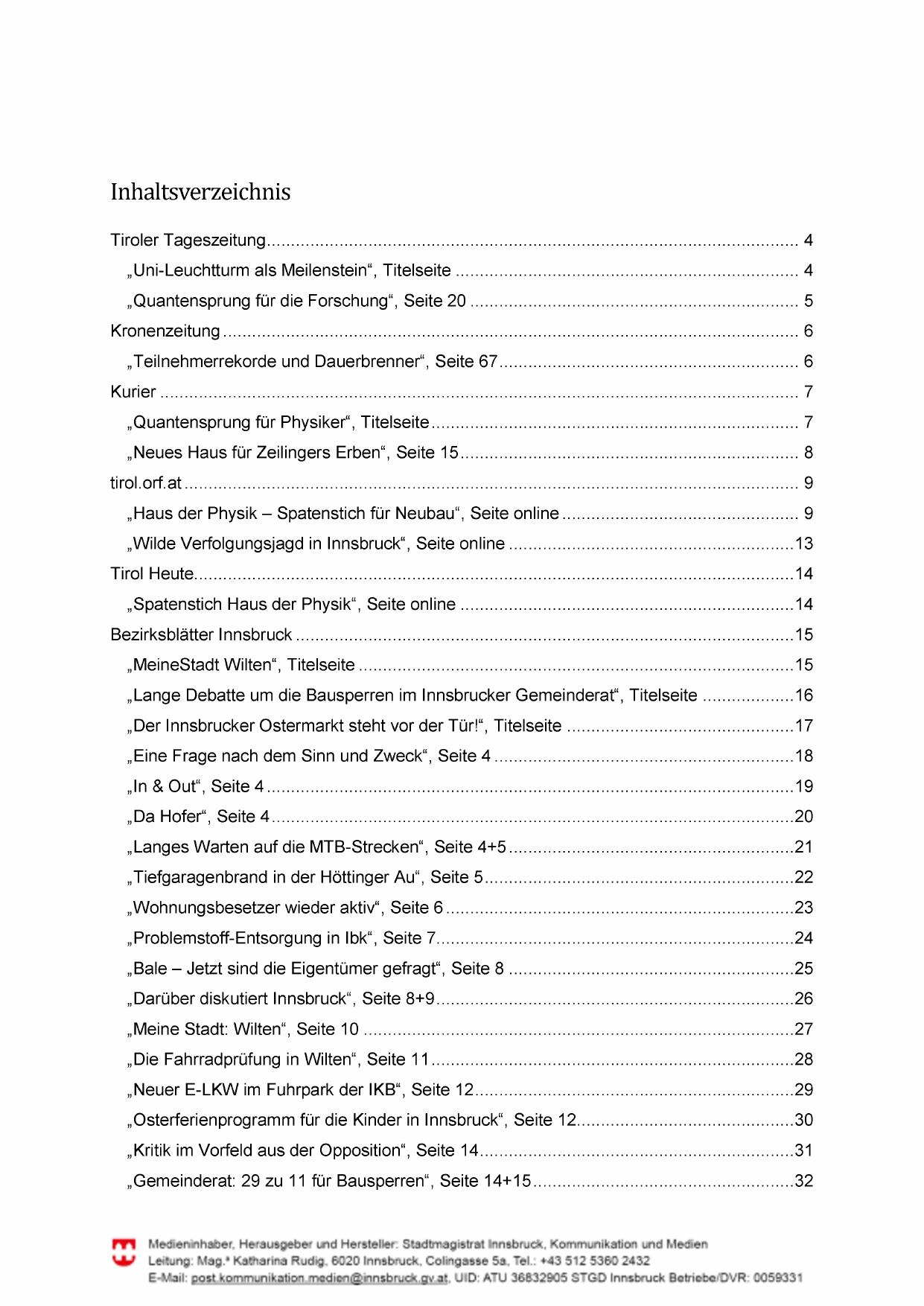 „Lange Debatte um die Bausperren im Innsbrucker Gemeinderat“, Titelseite ................... 16