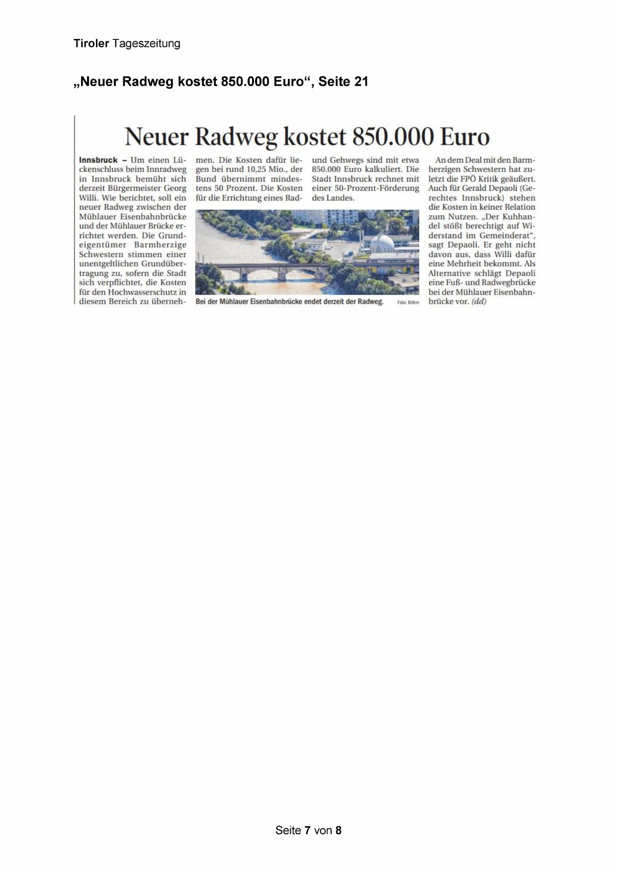 „Neuer Radweg kostet 850.000 Euro“, Seite 21