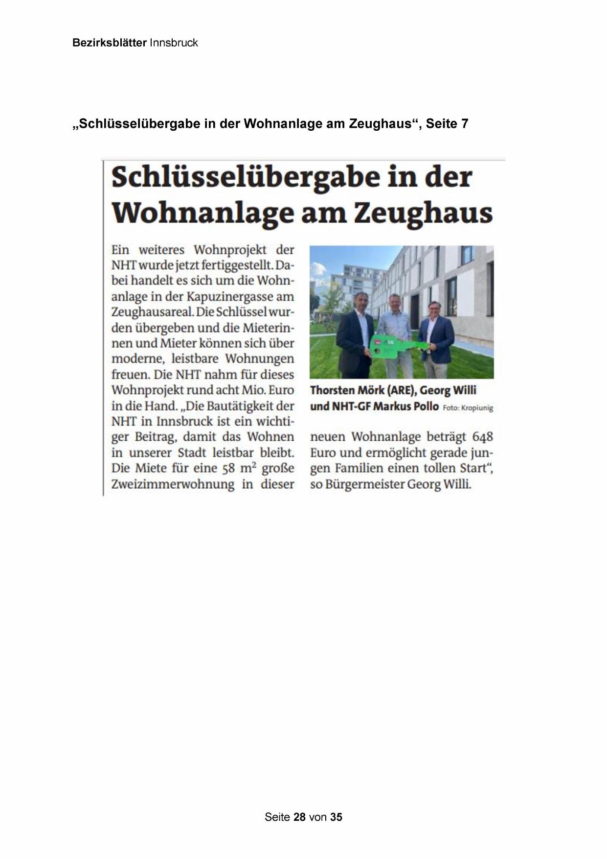 NHT in Innsbruck ist ein wichtiger Beitrag, damit das Wohnen