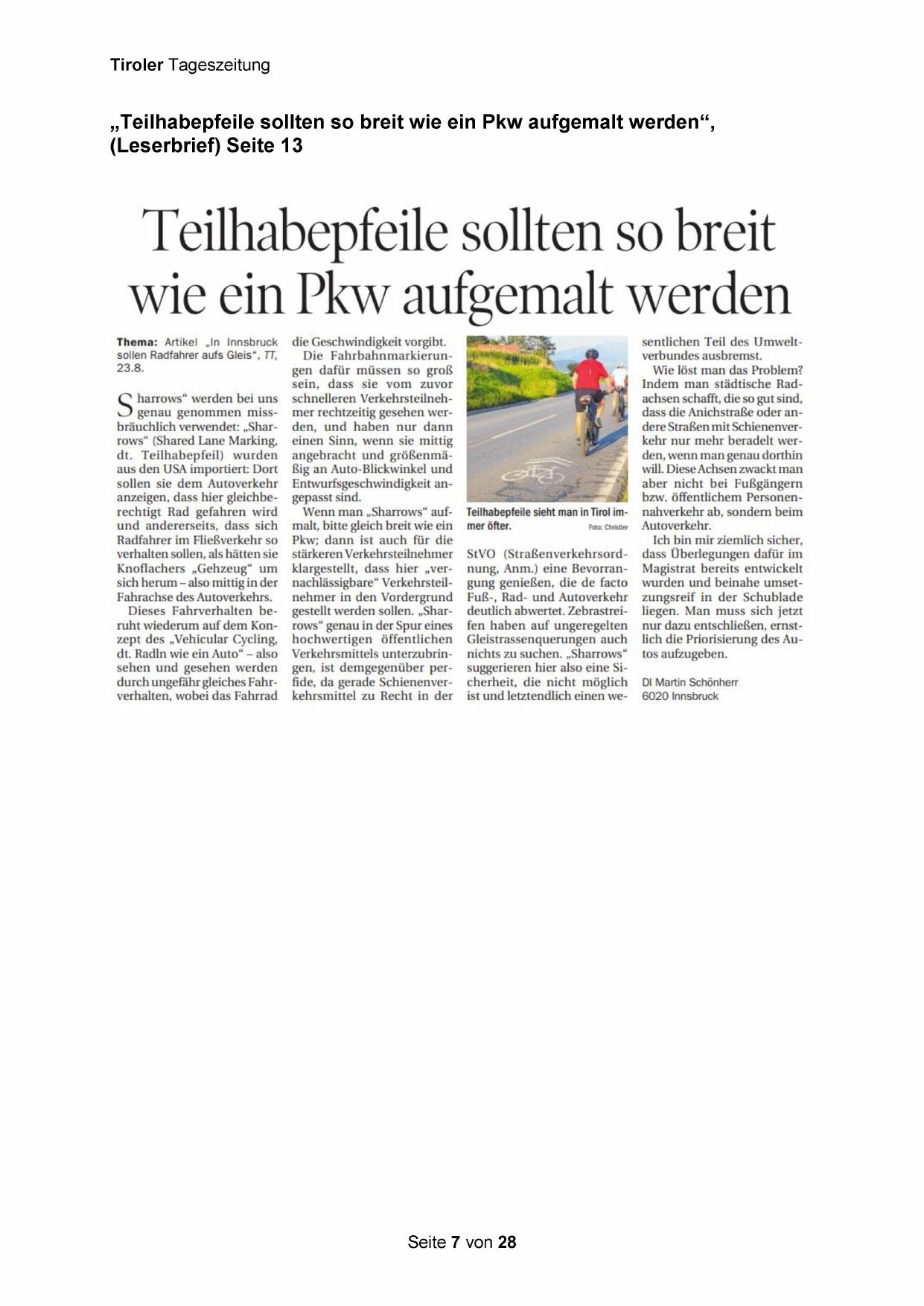 dass die Anichstraße oder andere Straßen mit Schienenverkehr nur mehr beradelt werden, wenn man genau dorthin
