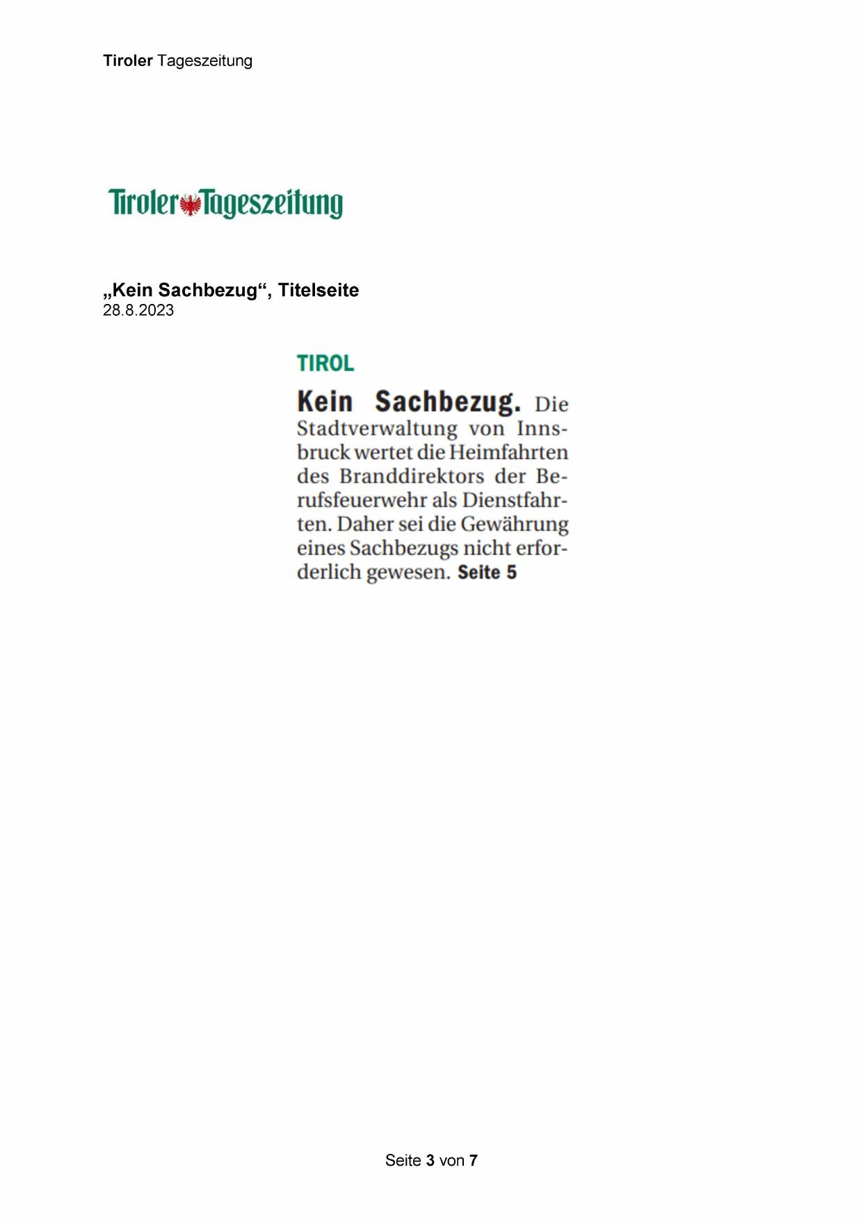 Stadtverwaltung von Innsbruck wertet die Heimfahrten