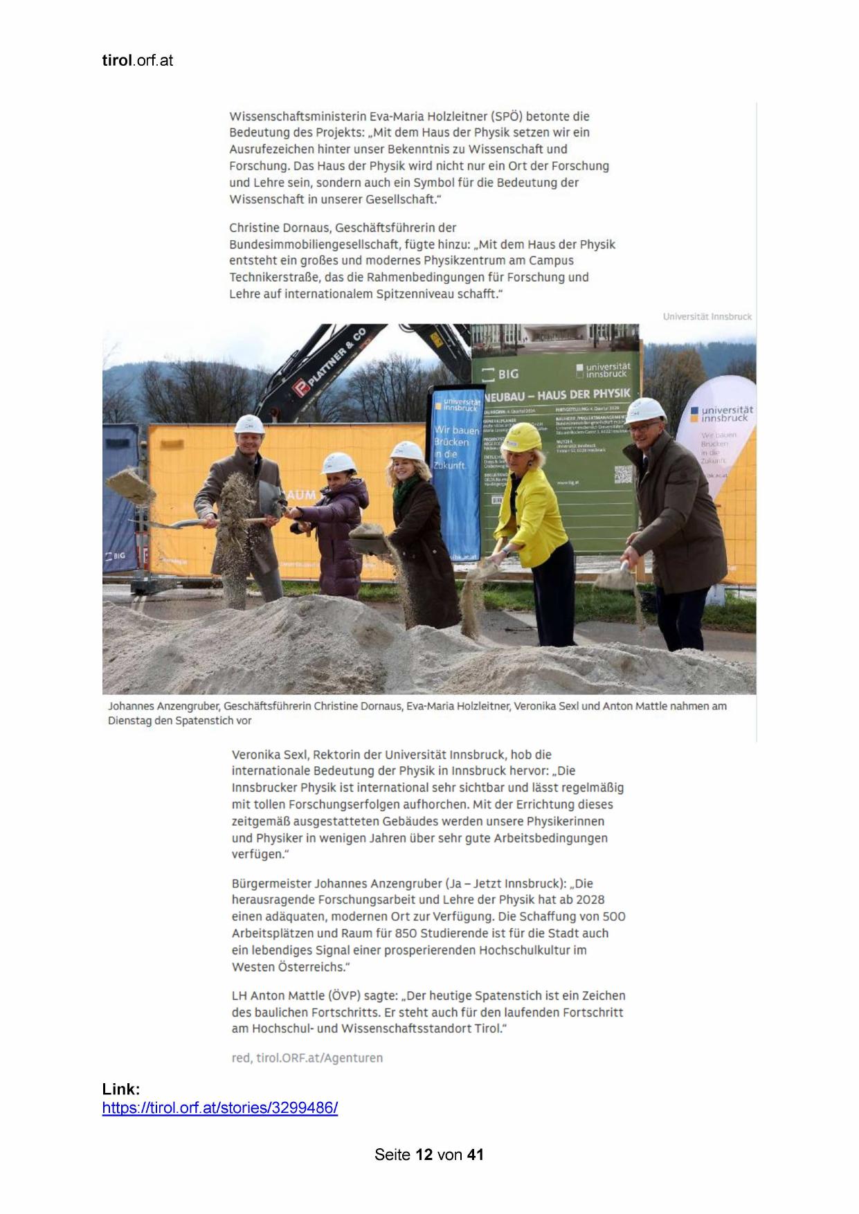 LH Anton Mattle (ÖvP) sagte: „Der heutige Spatenstich ist ein Zeichen