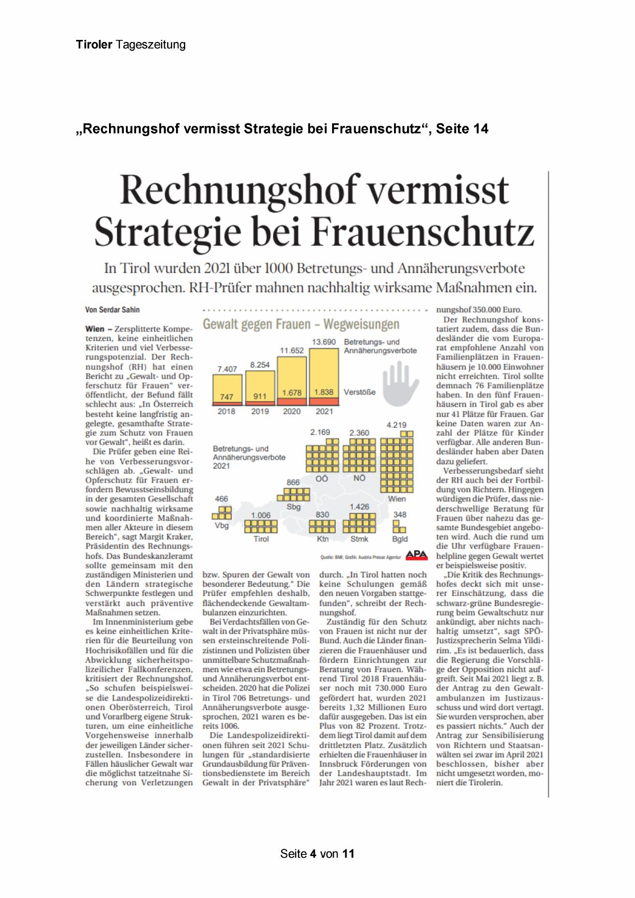 „Rechnungshof vermisst Strategie bei Frauenschutz“, Seite 14