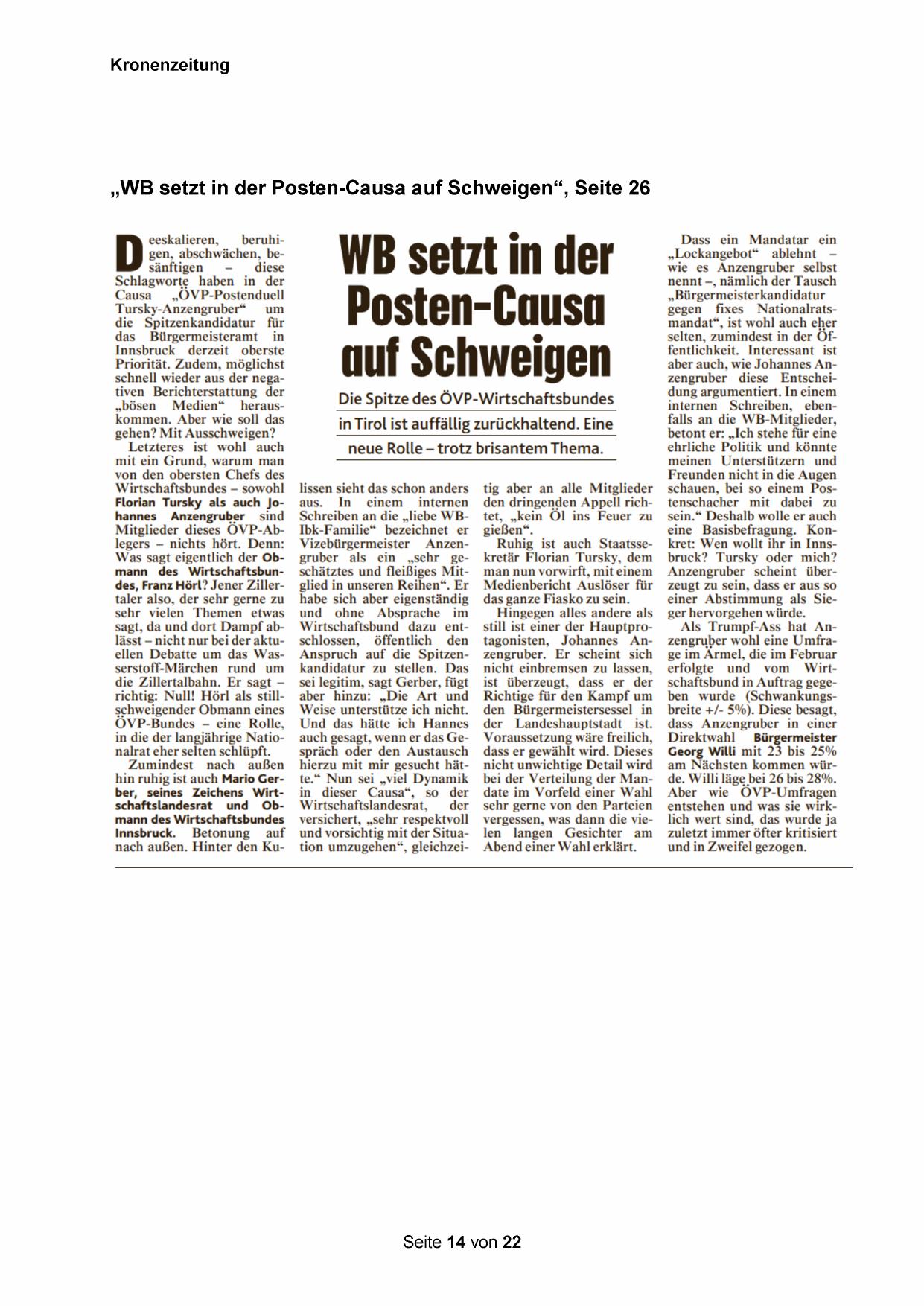„WB setzt in der Posten-Causa auf Schweigen“, Seite 26