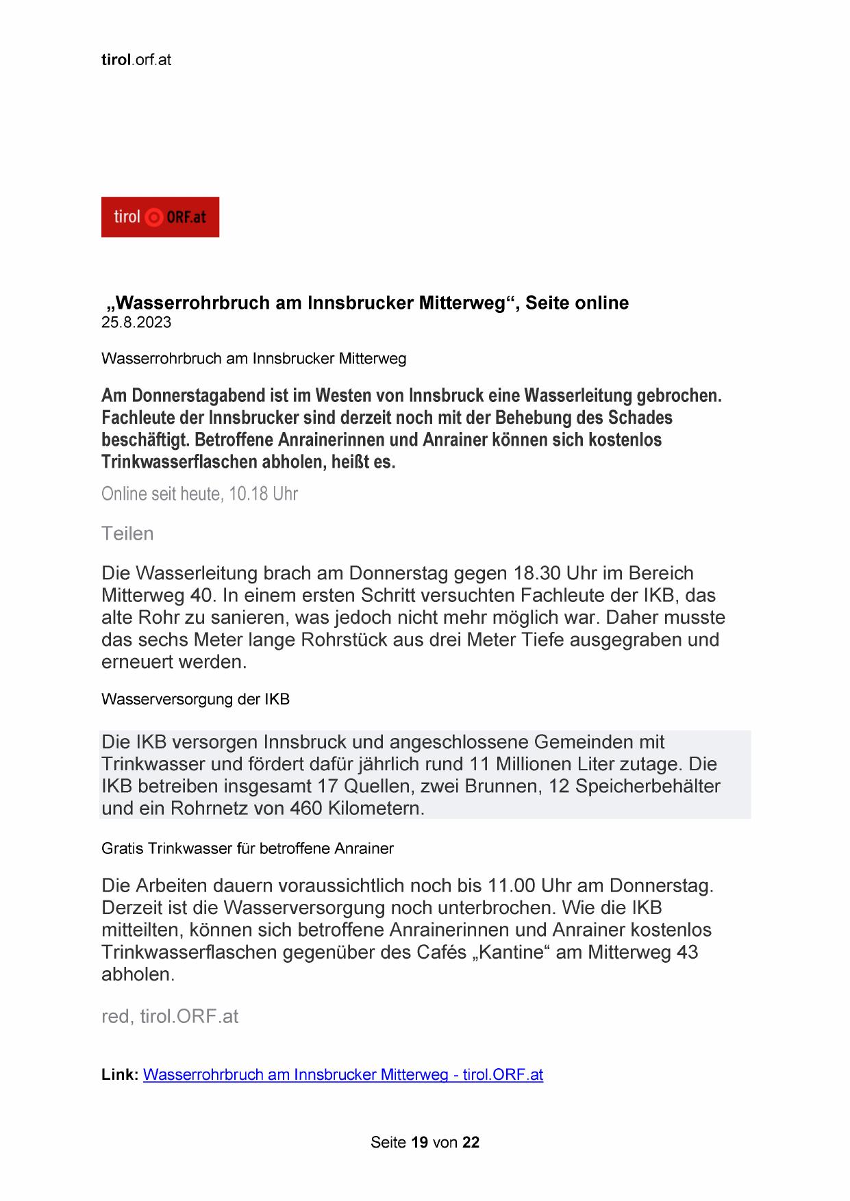 „Wasserrohrbruch am Innsbrucker Mitterweg“, Seite online