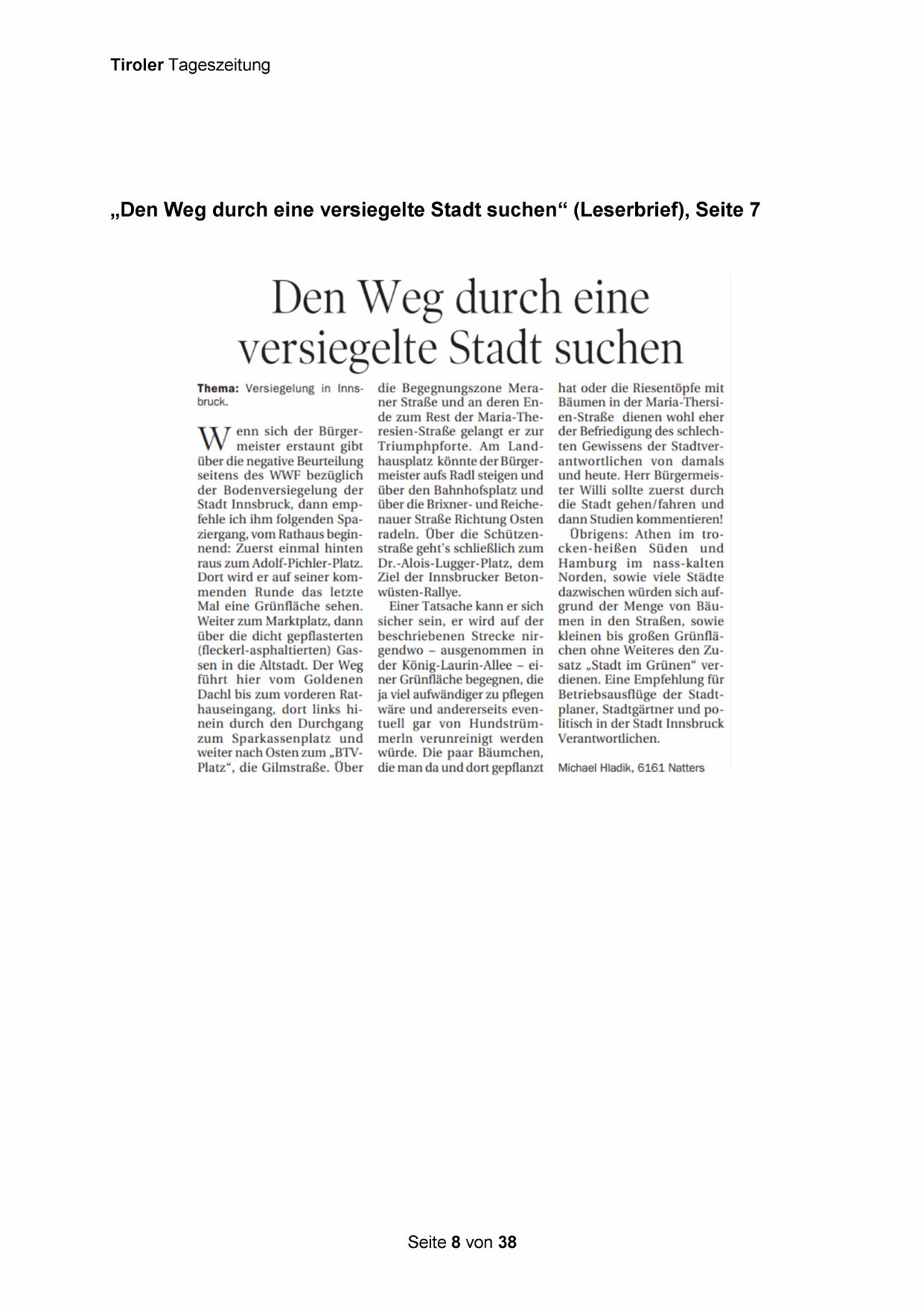 „Den Weg durch eine versiegelte Stadt suchen“ (Leserbrief), Seite 7