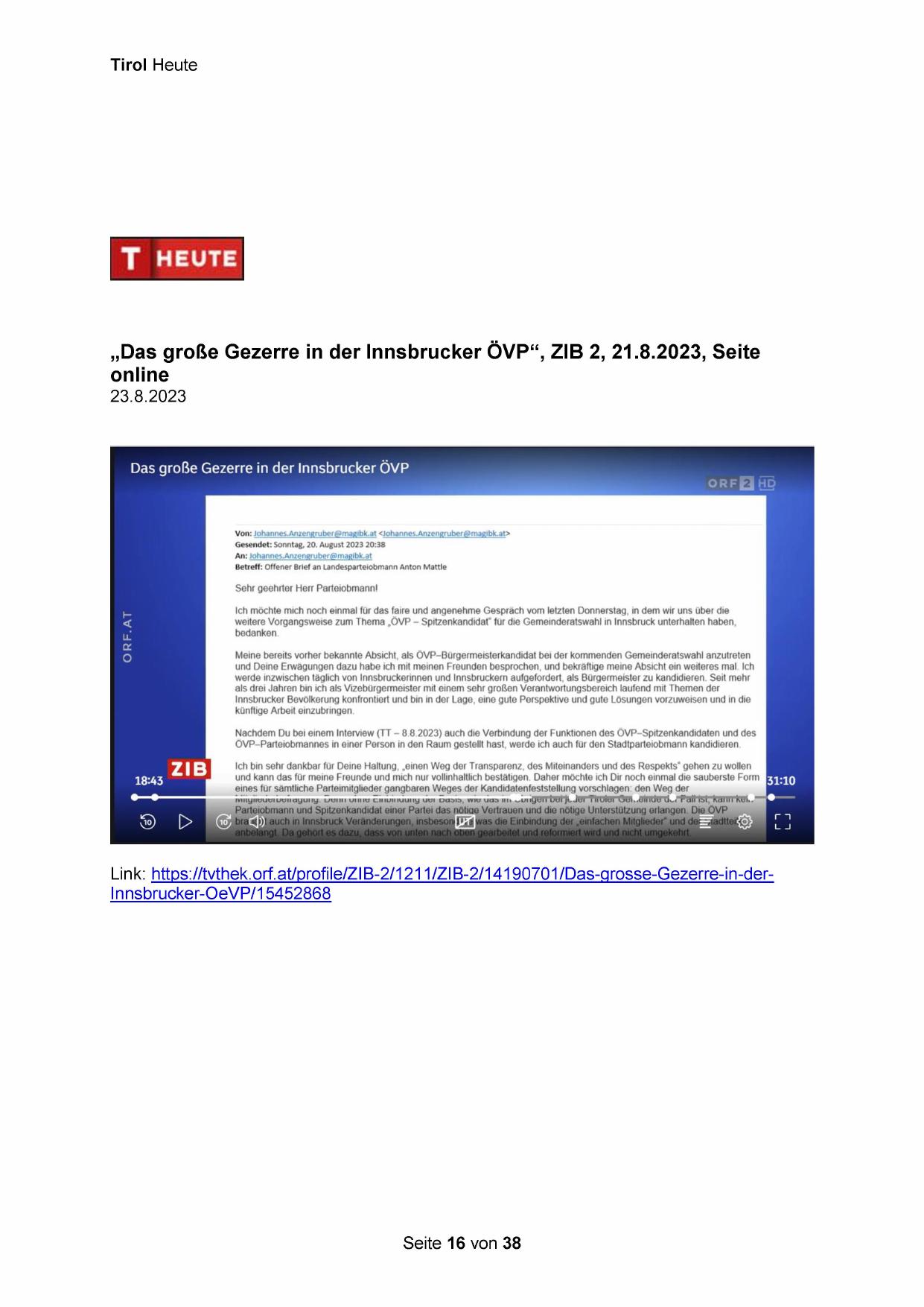„Das große Gezerre in der Innsbrucker ÖVP“, ZIB 2, 21.8.2023, Seite