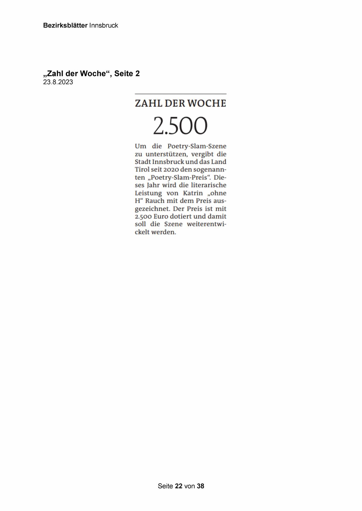 Tirol seit 2020 den sogenannten „Poetry-Slam-Preis“. Dieses Jahr wird die literarische
