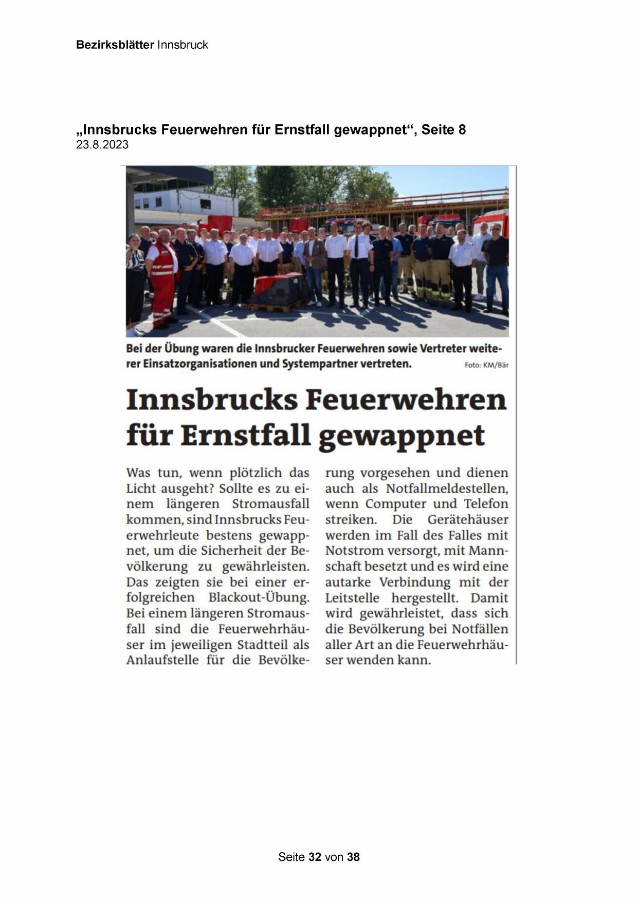 „Innsbrucks Feuerwehren für Ernstfall gewappnet“, Seite 8