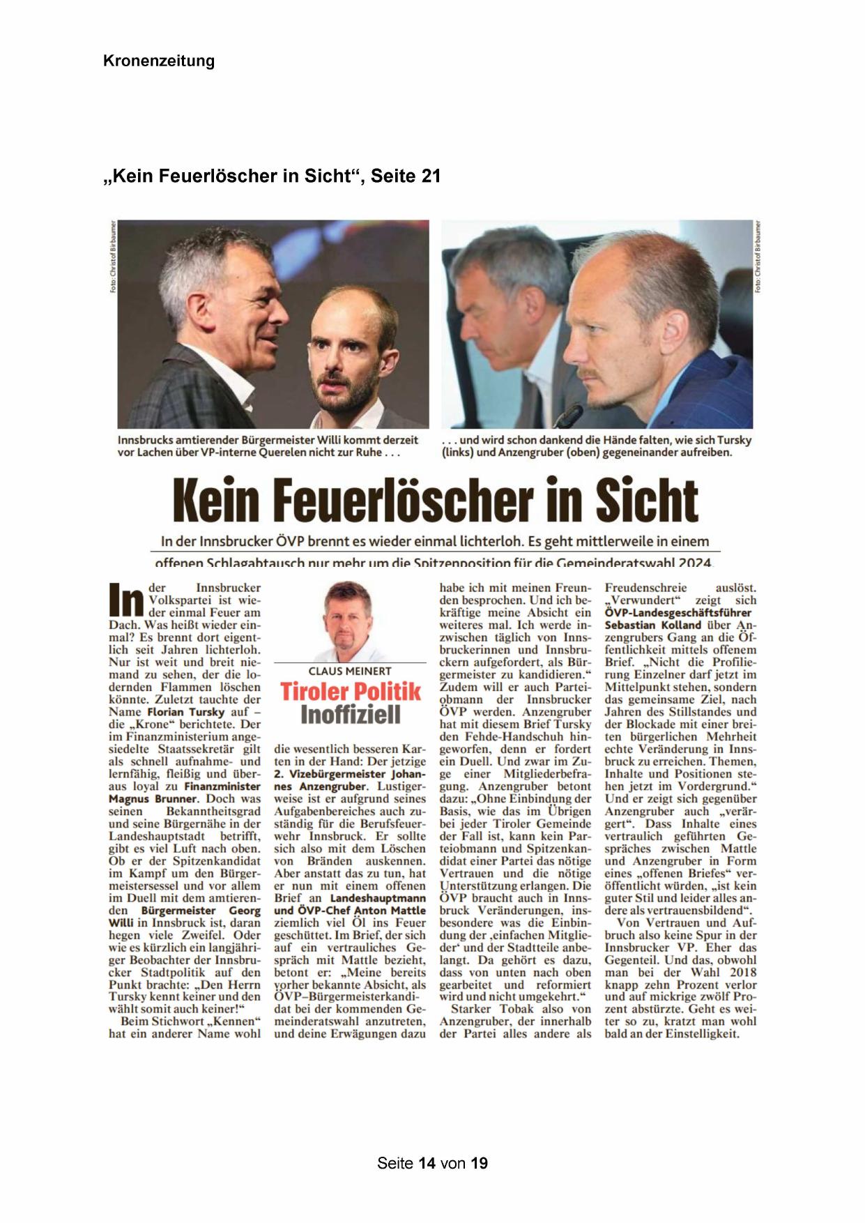 In der Innsbrucker ÖVP brennt es wieder einmal lichterloh. Es geht mittlerweile in einem
