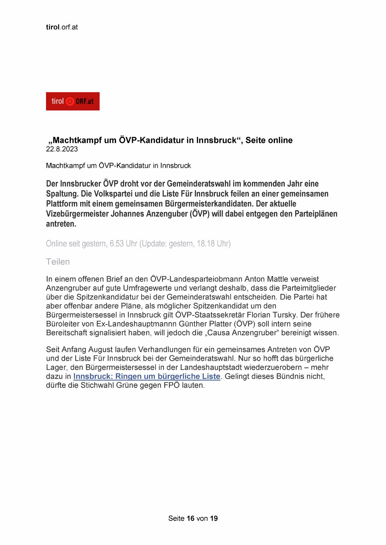 „Machtkampf um ÖVP-Kandidatur in Innsbruck“, Seite online