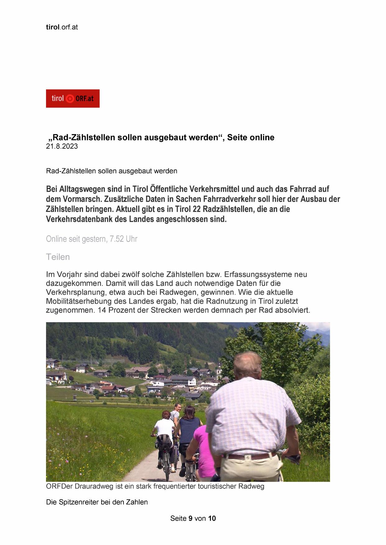 Zählstellen bringen. Aktuell gibt es in Tirol 22 Radzählstellen, die an die