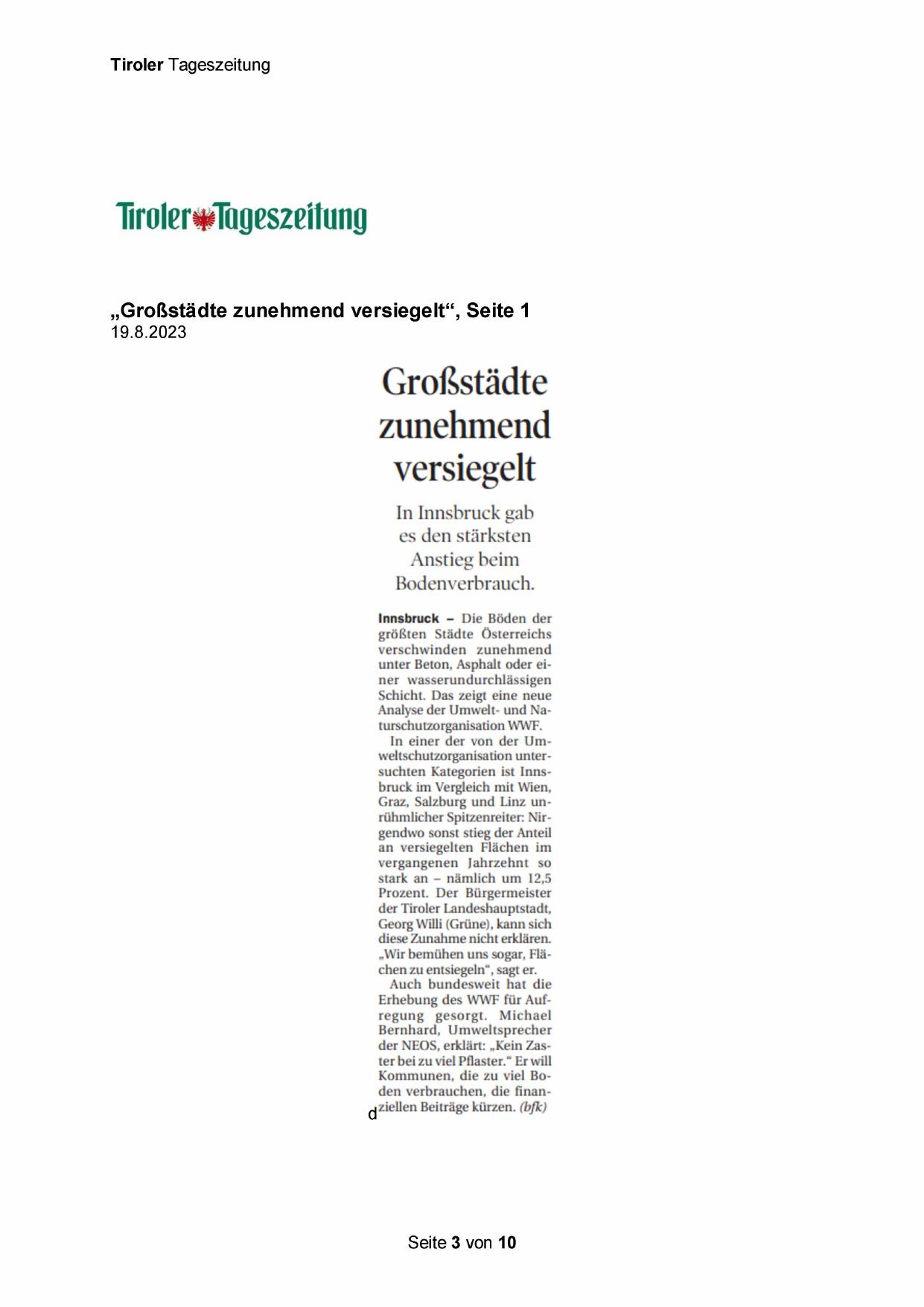 In einer der von der Umweltschutzorganisation untersuchten Kategorien ist Innsbruck im Vergleich mit Wien,