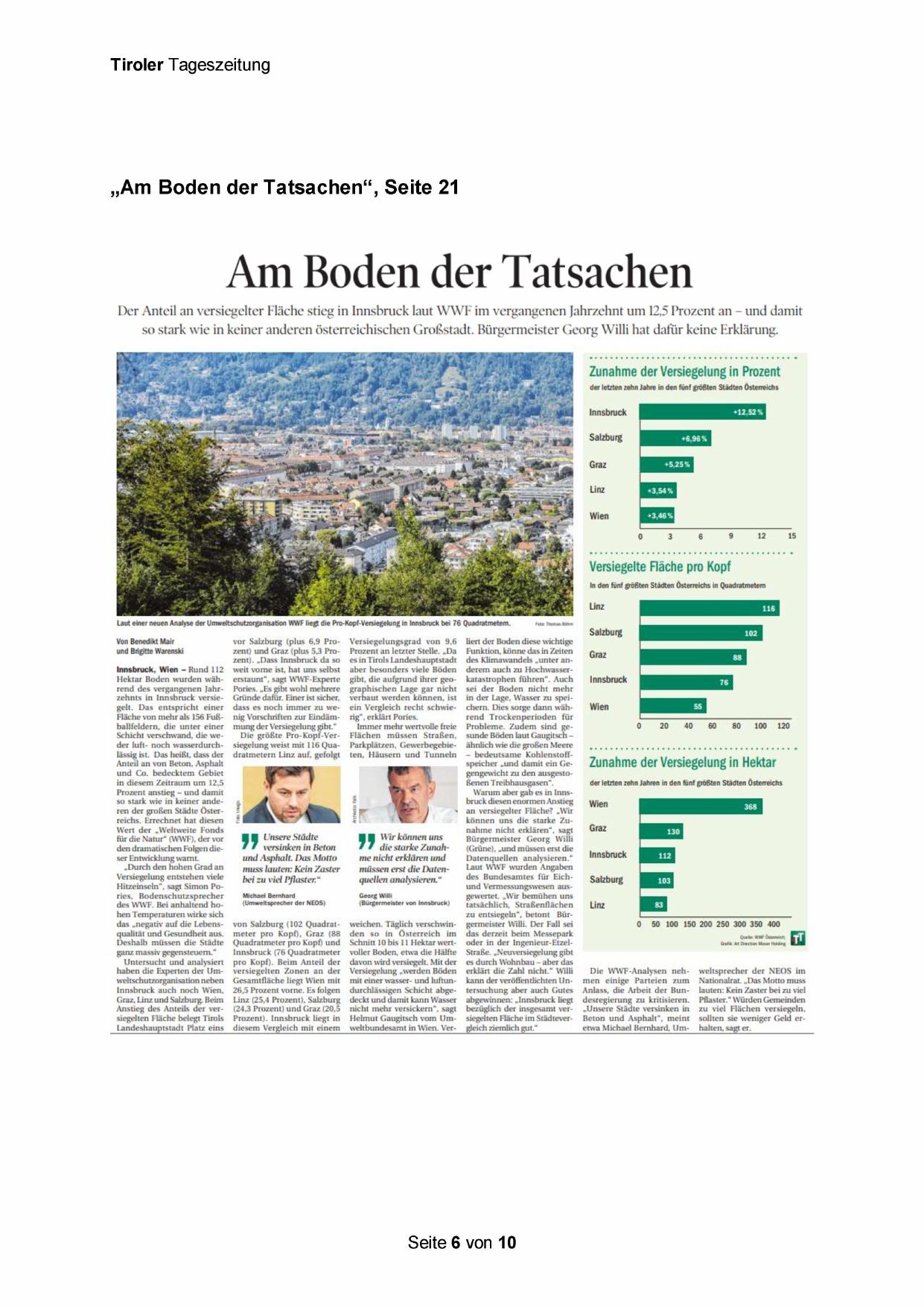 Hektar Boden wurden während des vergangenen Jahrzehnts in Innsbruck versiegelt. Das entspricht einer