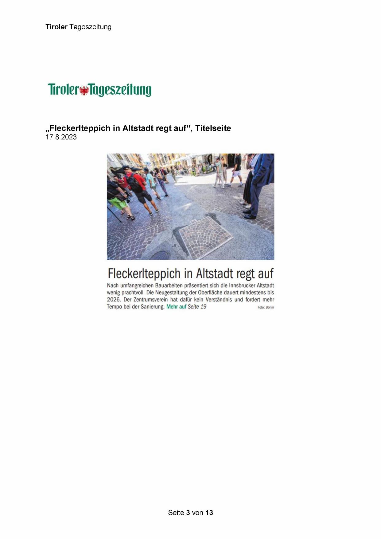 „Fleckerlteppich in Altstadt regt auf“, Titelseite