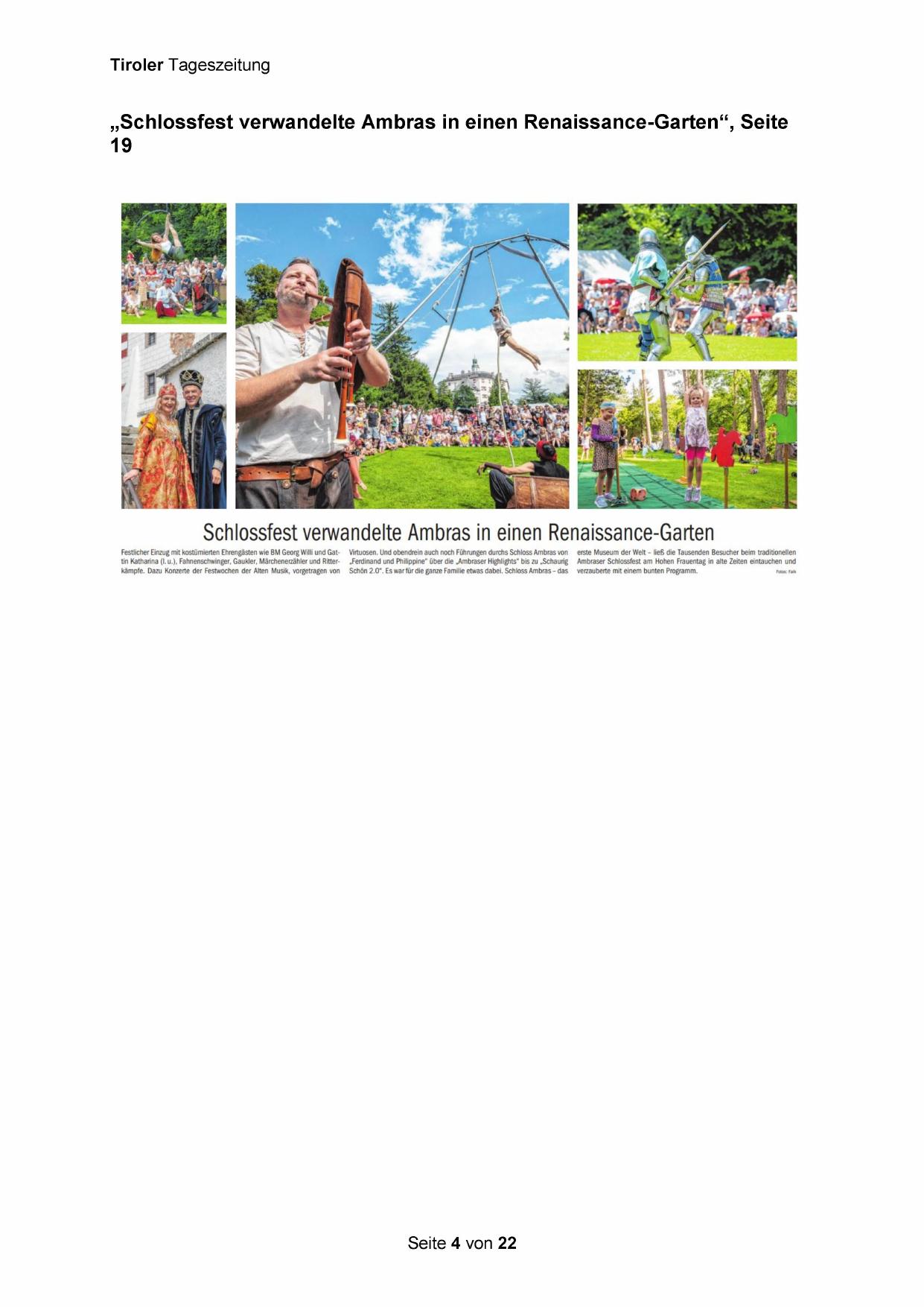 „Schlossfest verwandelte Ambras in einen Renaissance-Garten“, Seite