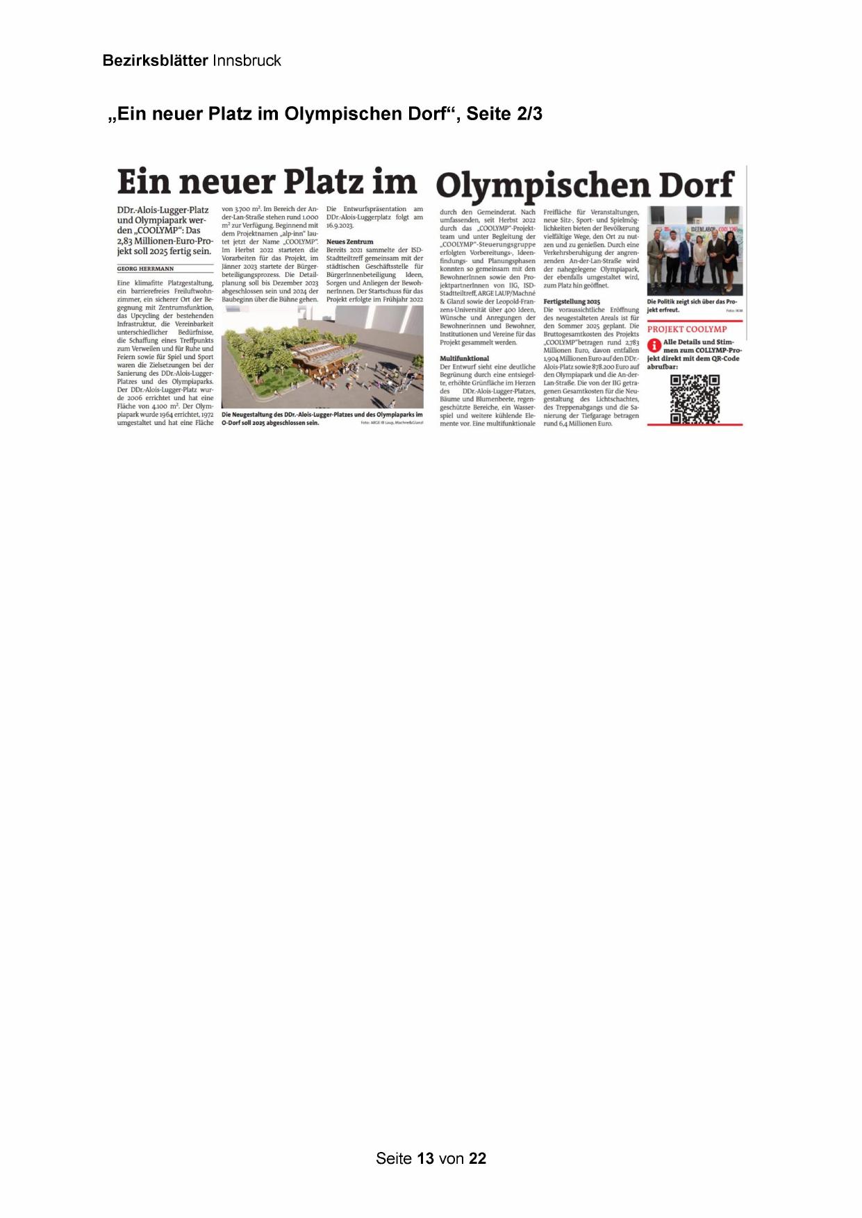 Die Neugestaltung des DDr.-Alois-Lugger-Platzes und des Olympiaparks im