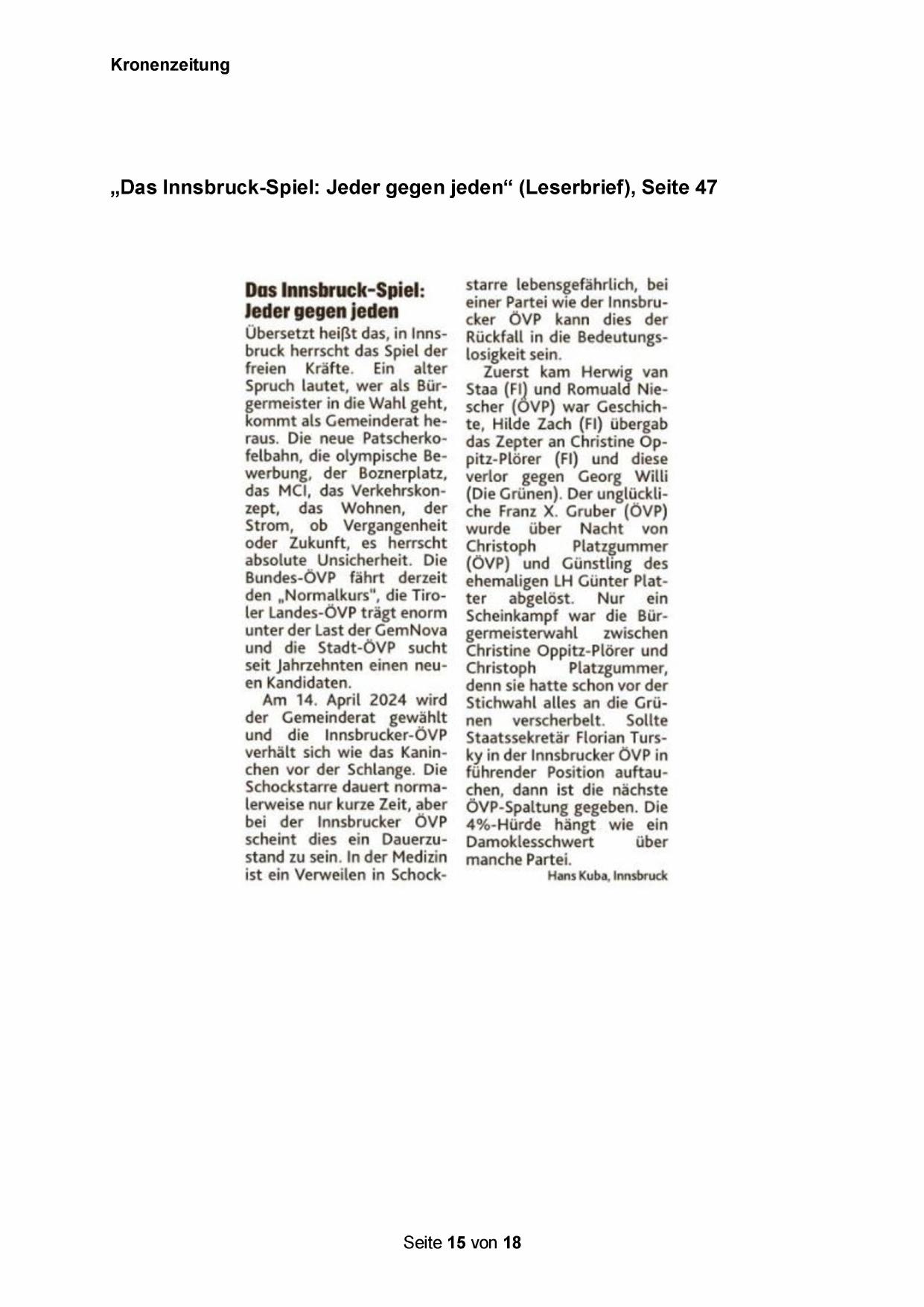„Das Innsbruck-Spiel: Jeder gegen jeden“ (Leserbrief), Seite 47