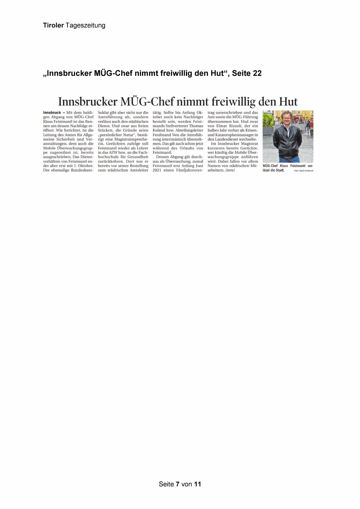 „Innsbrucker MÜG-Chef nimmt freiwillig den Hut“, Seite 22
