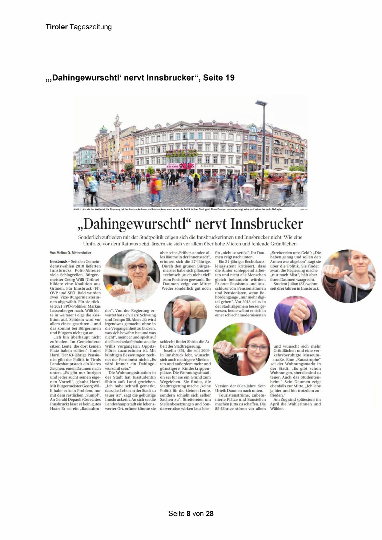 „‚Dahingewurschtl‘ nervt Innsbrucker“, Seite 19