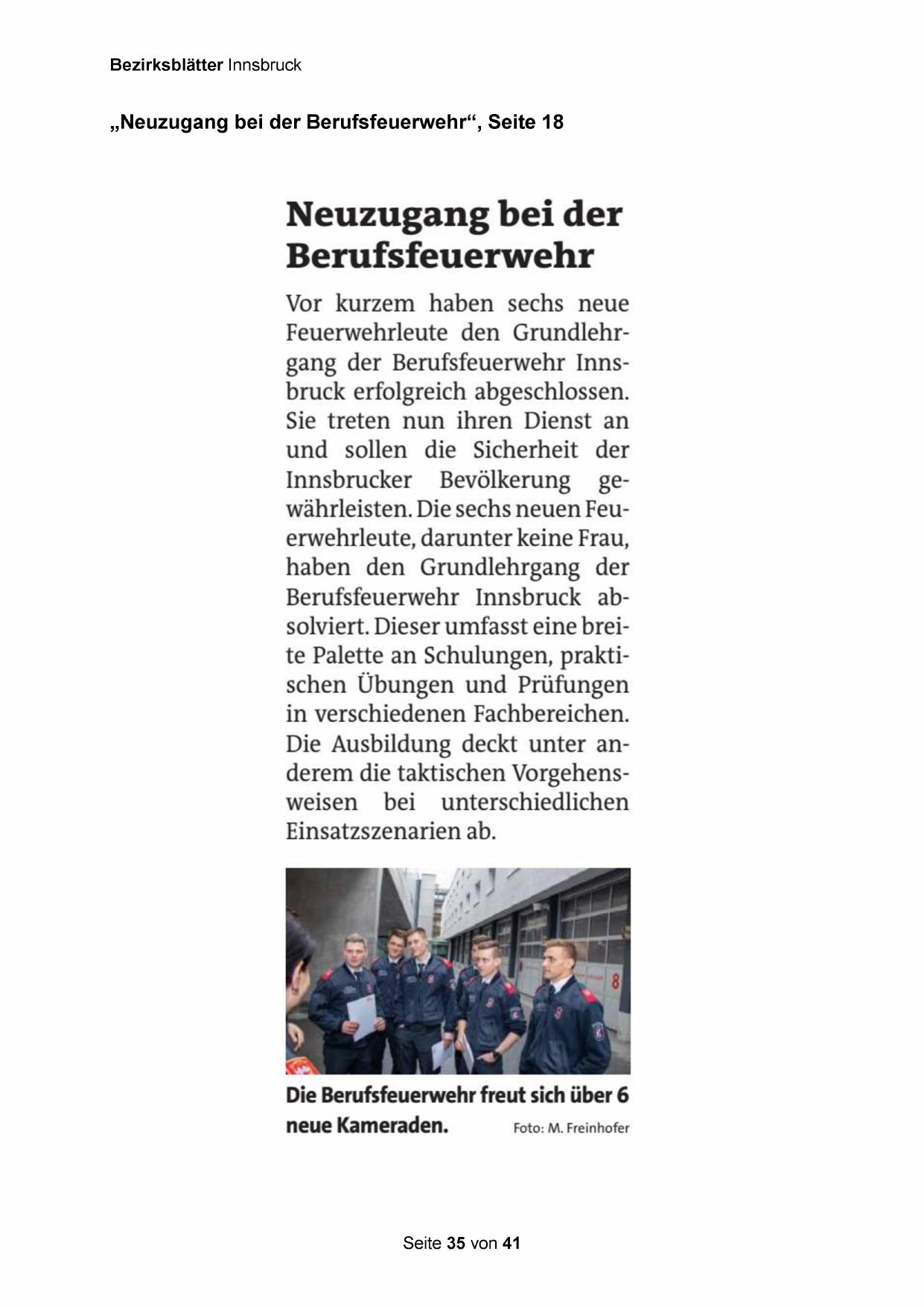 Innsbrucker Bevölkerung gewährleisten. Die sechs neuen Feuerwehrleute, darunter keine Frau,