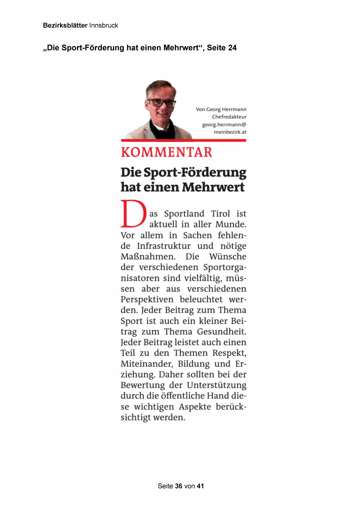 „Die Sport-Förderung hat einen Mehrwert“, Seite 24