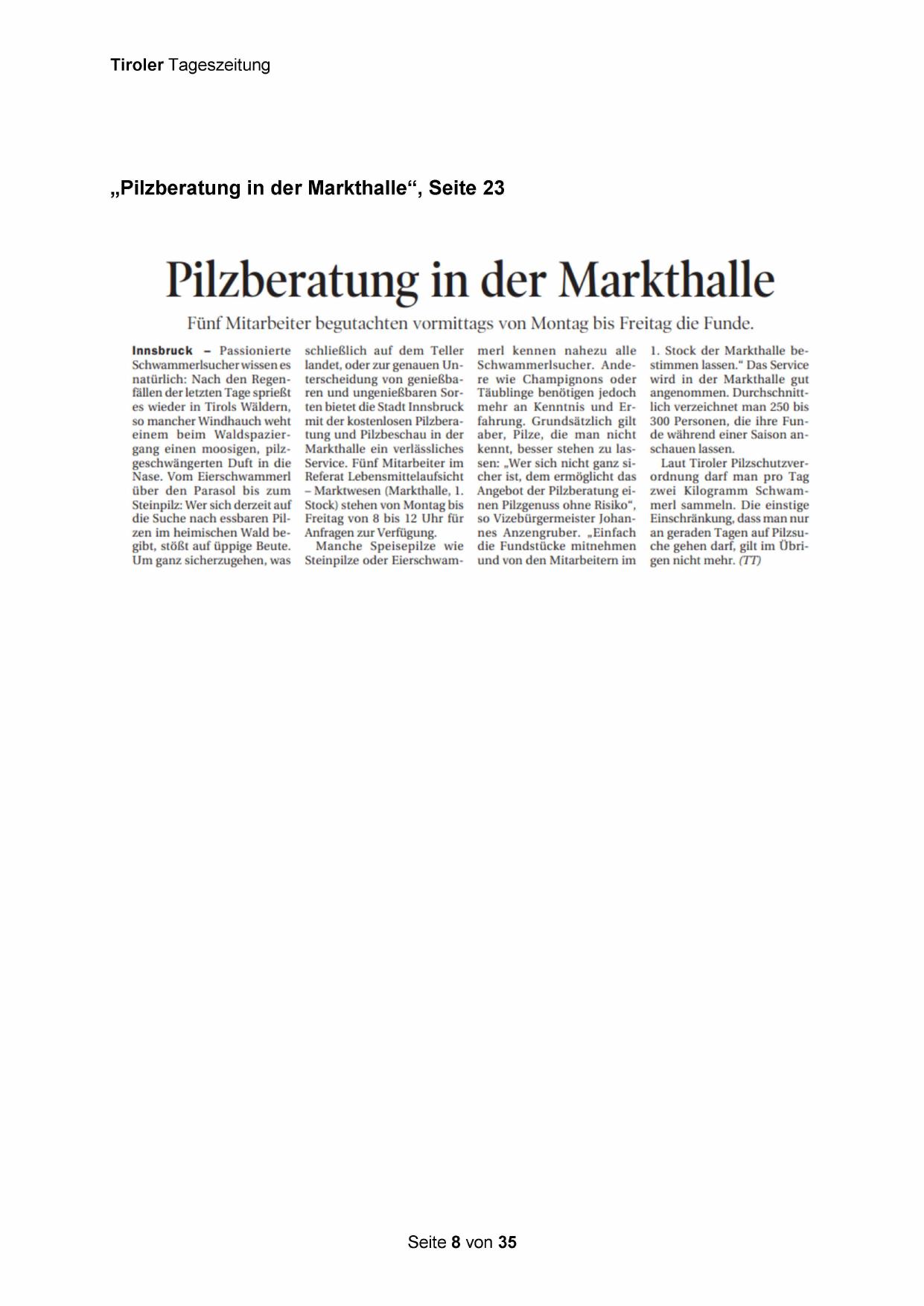 landet, oder zur genauen Unterscheidung von genießbaren und ungenießbaren Sorten bietet die Stadt Innsbruck
