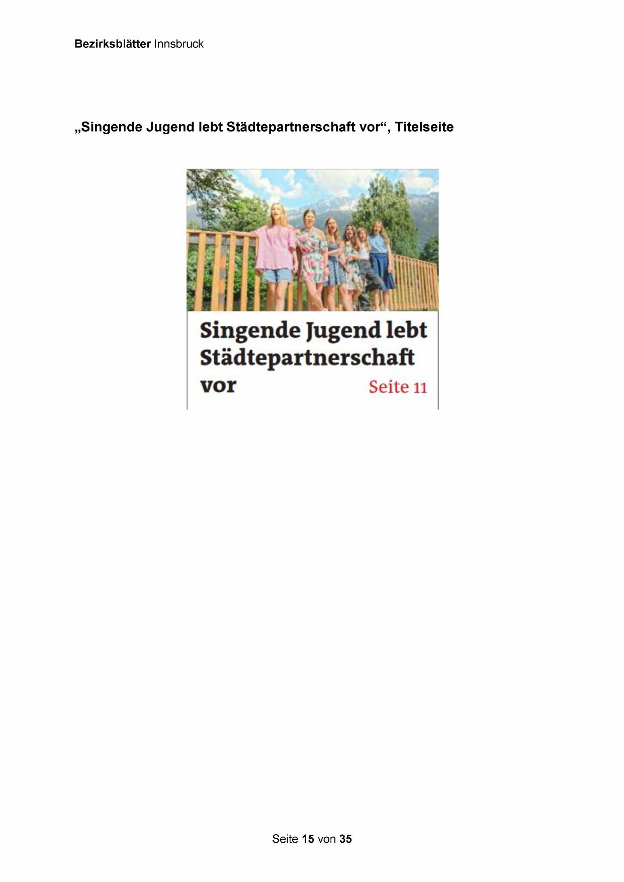 „Singende Jugend lebt Städtepartnerschaft vor“, Titelseite