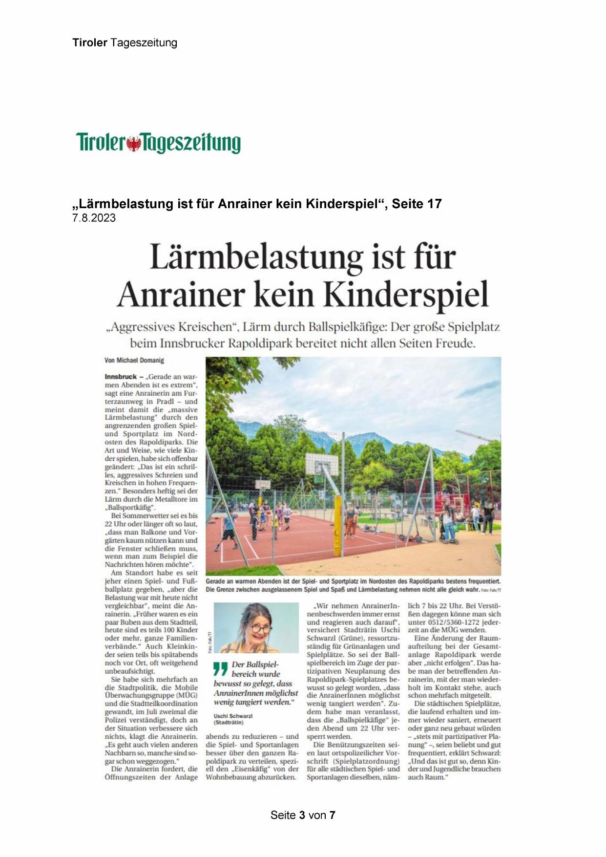 „Lärmbelastung ist für Anrainer kein Kinderspiel“, Seite 17