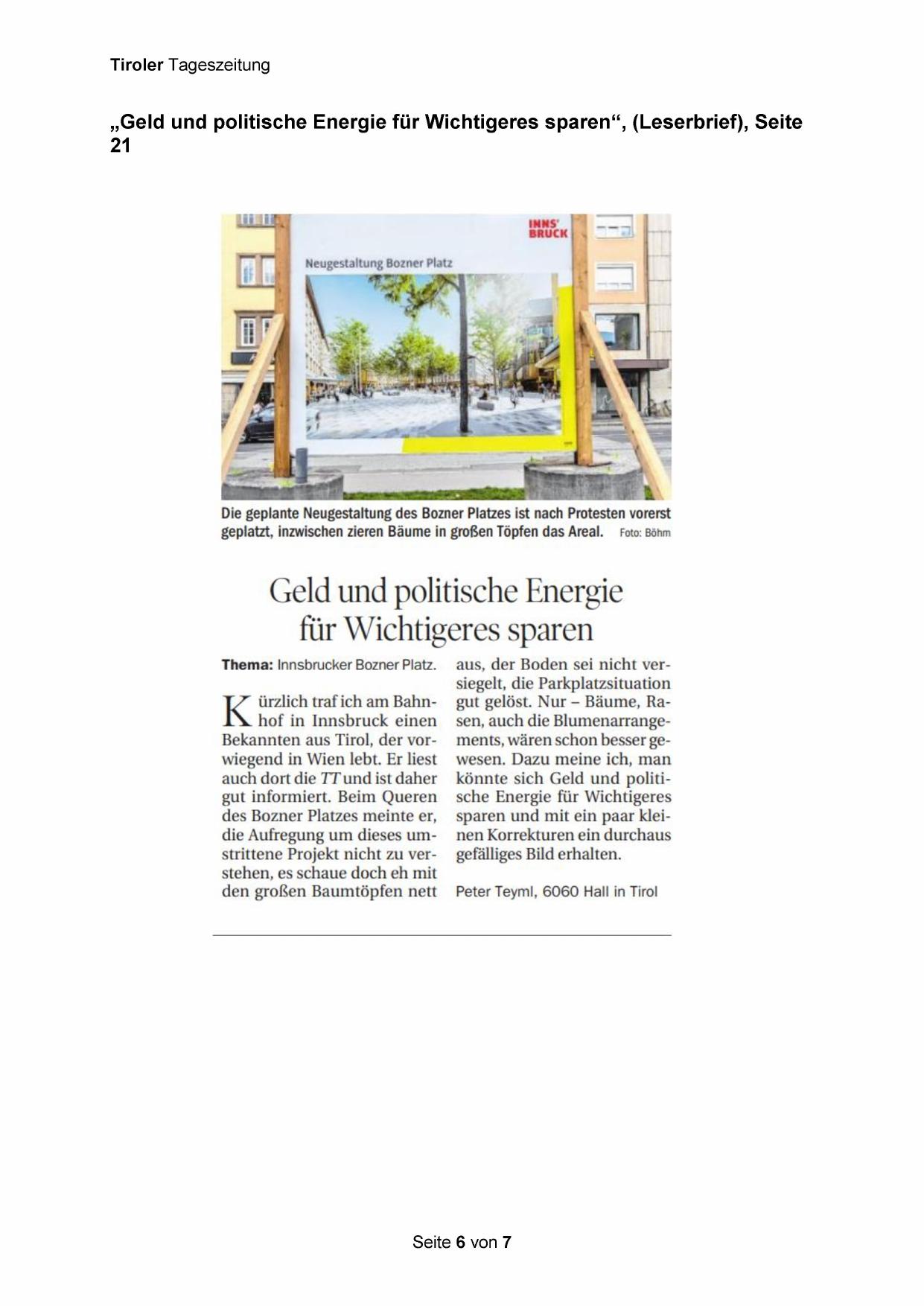 „Geld und politische Energie für Wichtigeres sparen“, (Leserbrief), Seite