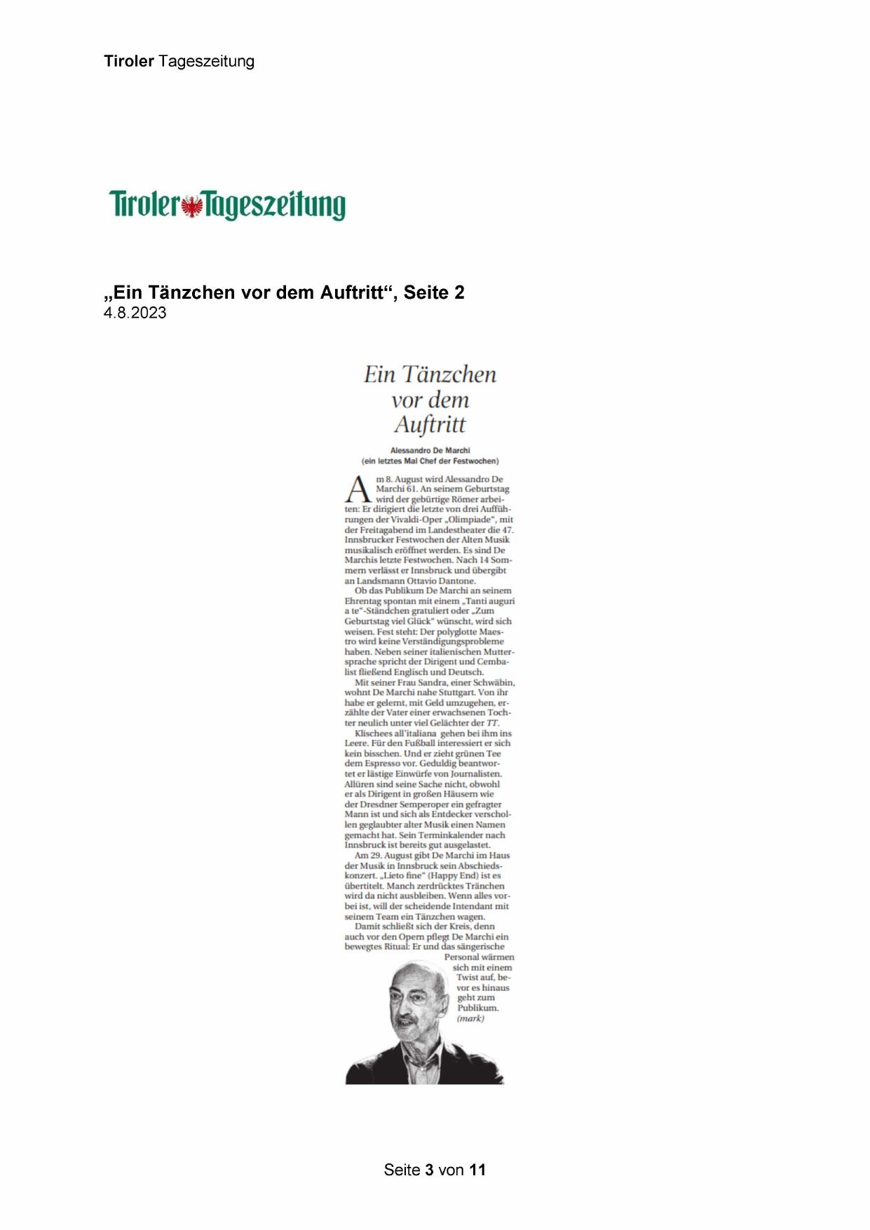 Marchis letzte Festwochen. Nach 14 Sommern verlässt er Innsbruck und übergibt