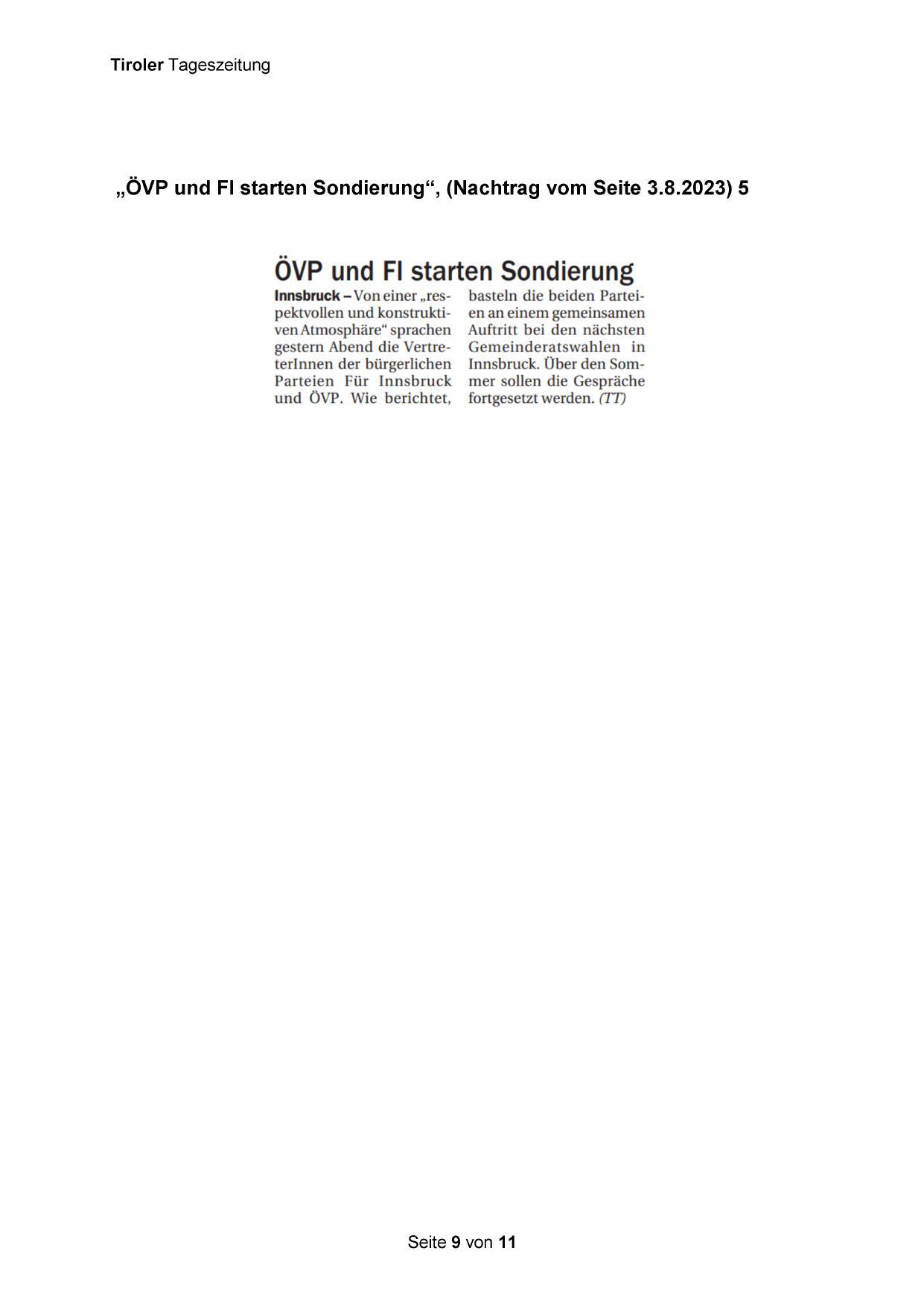 „ÖVP und FI starten Sondierung“, (Nachtrag vom Seite 3.8.2023) 5
