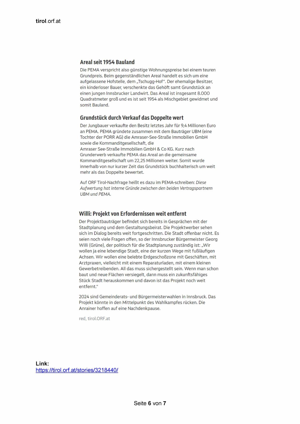 Tochter der PORR AG) die Amraser-See-Straße Immobilien GmbH