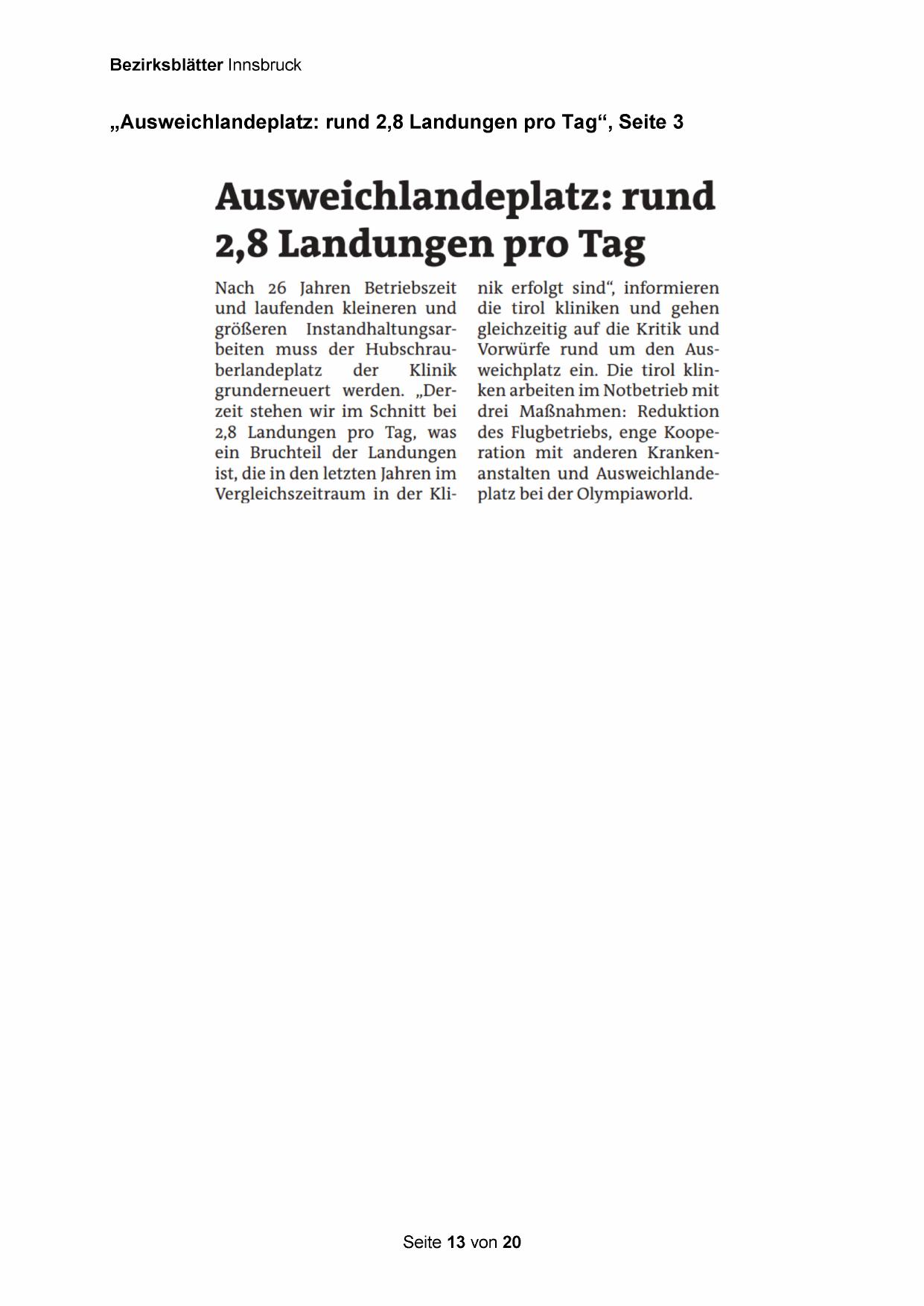 des Flugbetriebs, enge Kooperation mit anderen Krankenanstalten und Ausweichlandeplatz bei der Olympiaworld.